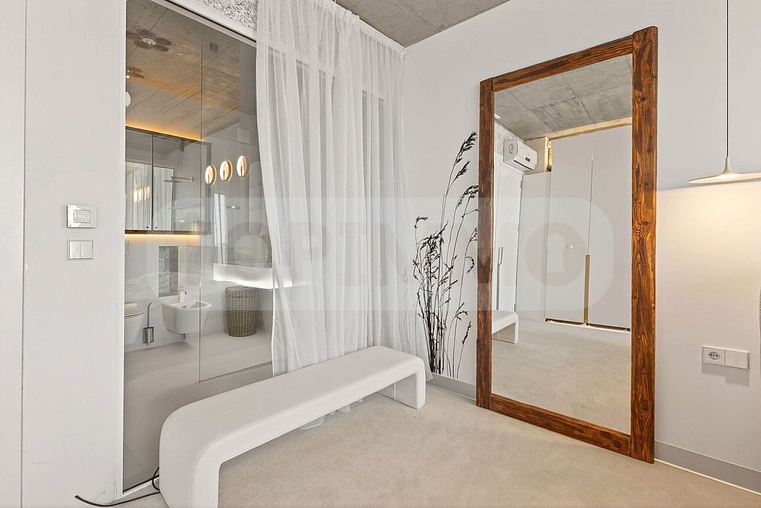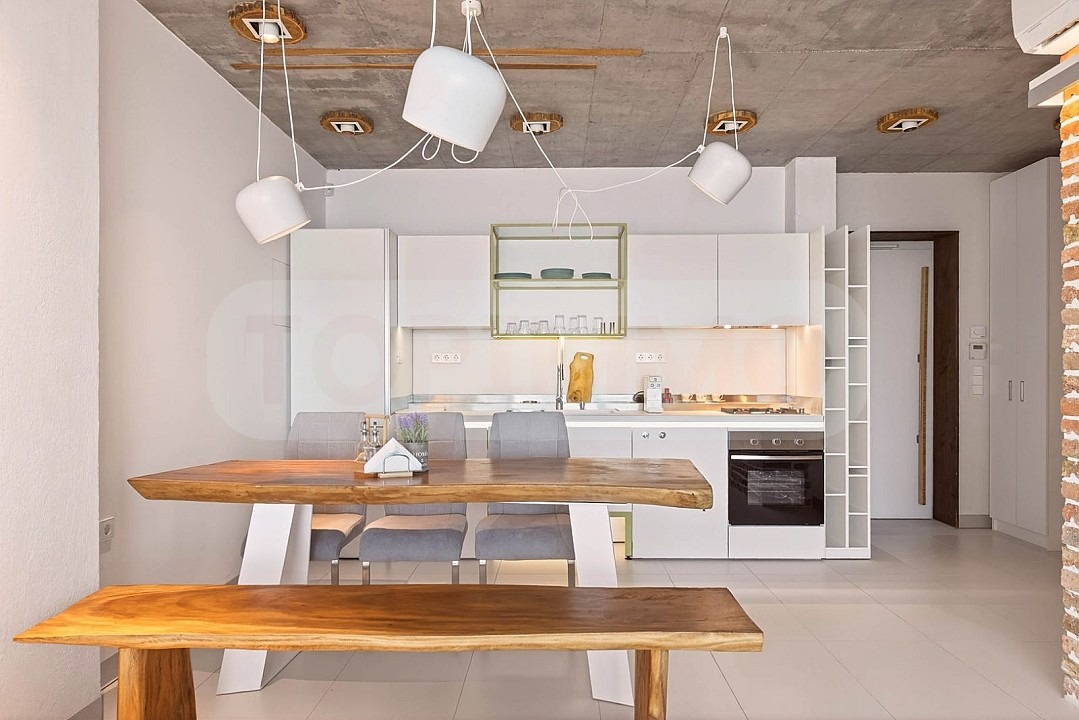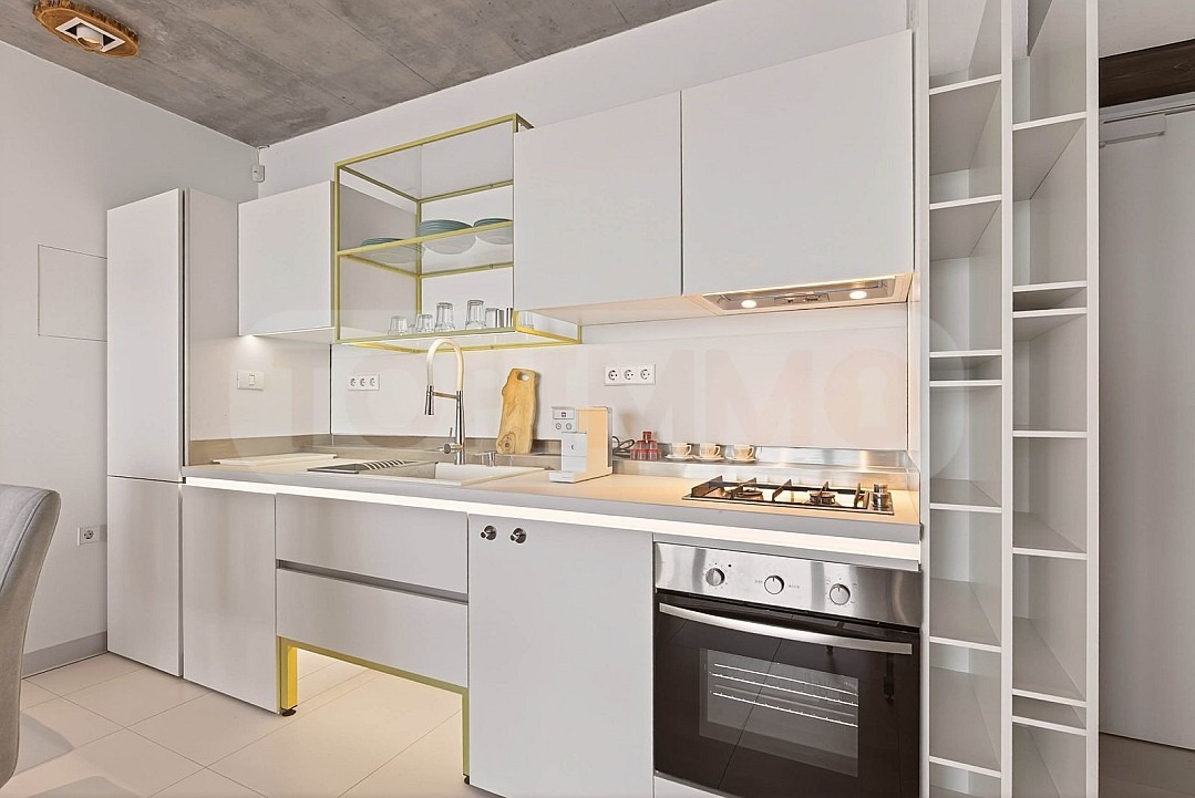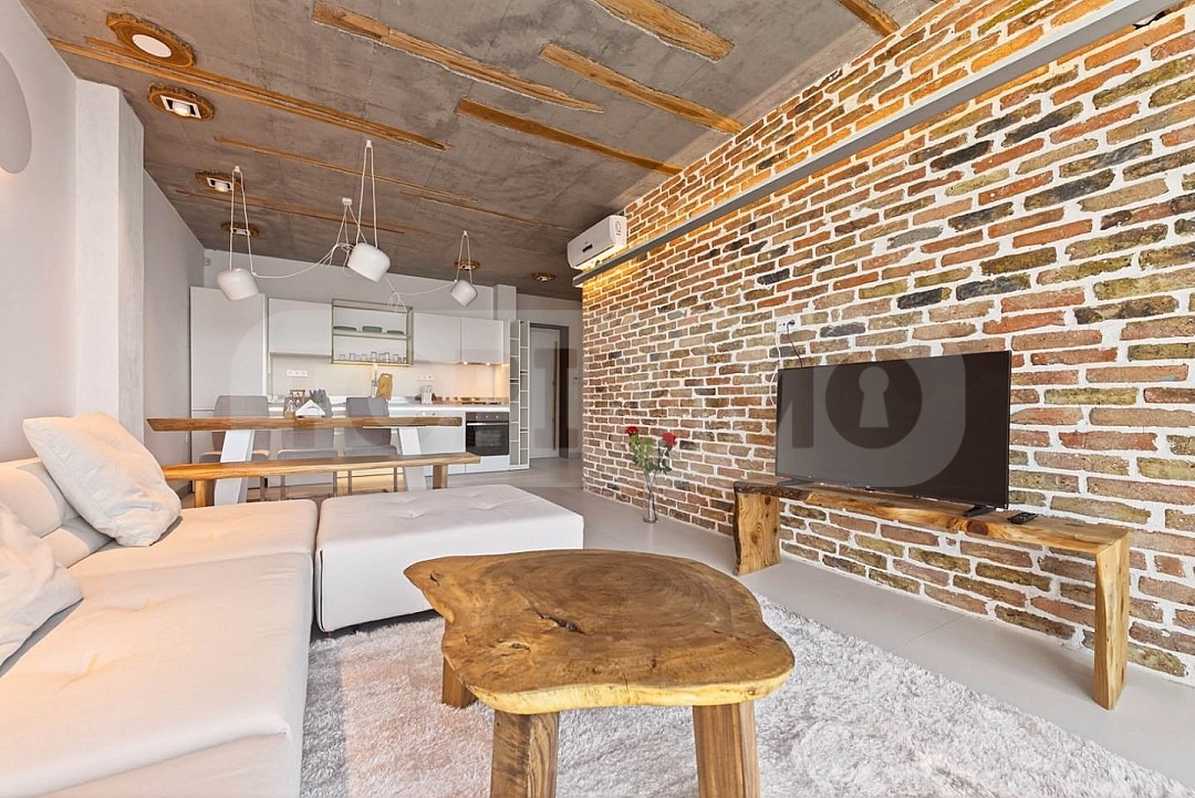 Апартаментът се предлага напълно обзаведен с маркови италиански мебели, без компромис в качеството и функционалността им, и се състои от входно антре, дневна с кухненски, спалня, баня с тоалетна, тераса.