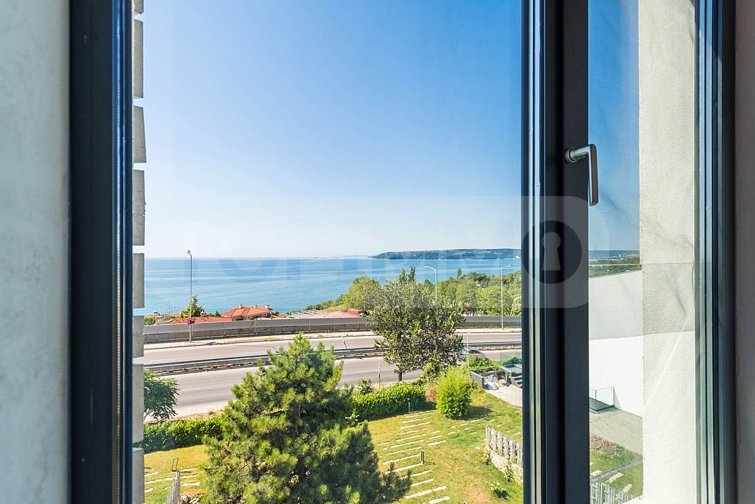 ТОПИММО предлага под наем двустаен апартамент в луксозен жилищен комплекс в квартал Бриз, в сграда с изключително модерна визия и с необятна гледка към морето. Разположен на пешеходно разстояние от Морската градина и плажа, комплексът предлага уют, спокойствие и лукс сред природата в съчетание с панорамна гледка към морето.