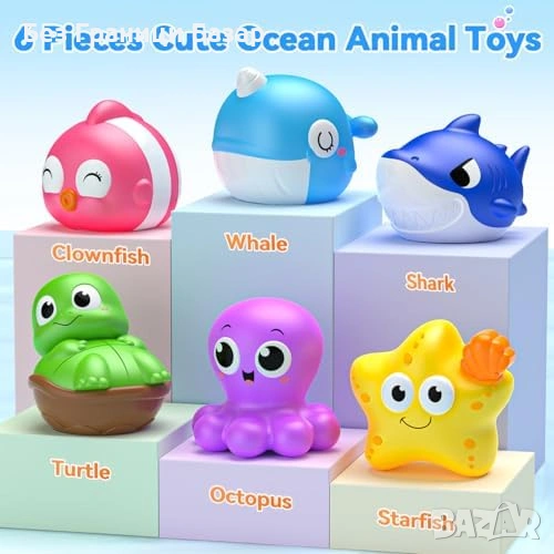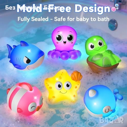 Нови Бебешки играчки за баня 6 броя светещи морски животни LED за деца