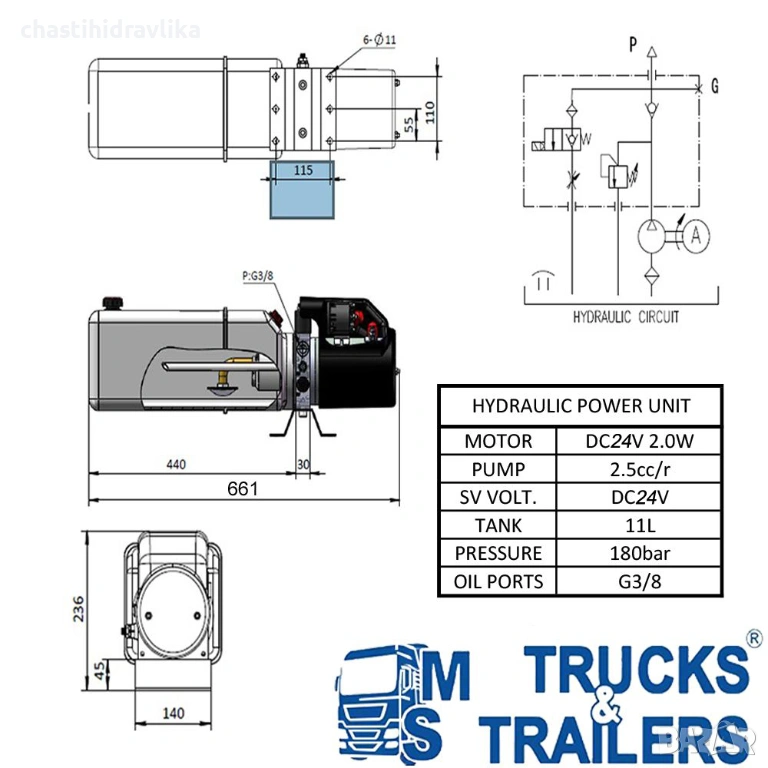 Електрическа хидравлична помпа 24V 2000W