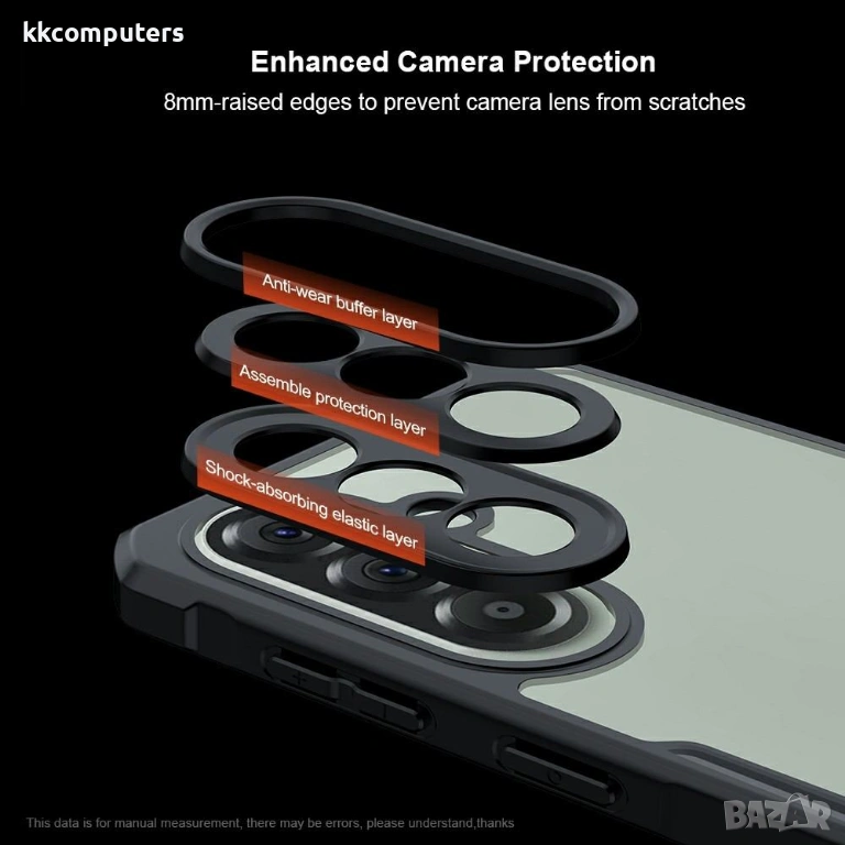 0.8 mm повдигнати ръбове за защита: Издигнатите ръбове около камерния модул и екрана (0.8 mm) предпазват от директен контакт с повърхности, предотвратявайки драскотини и повреди.