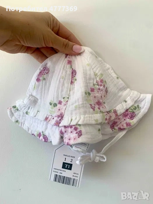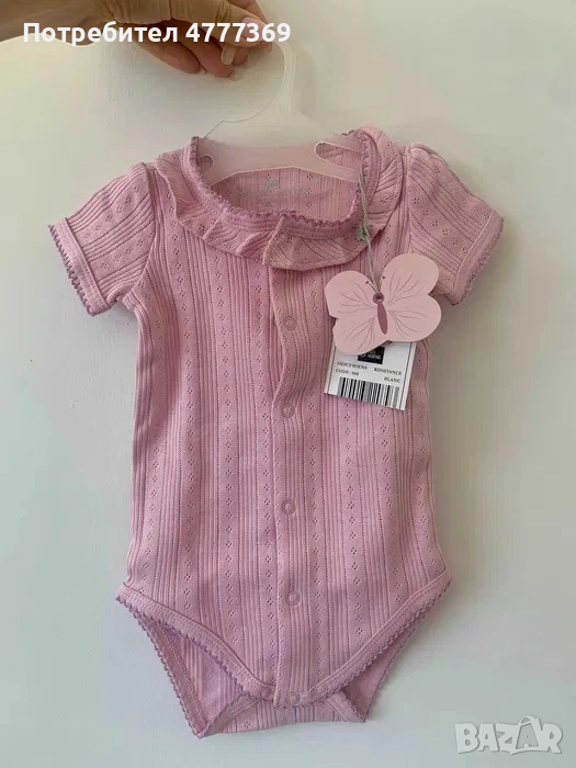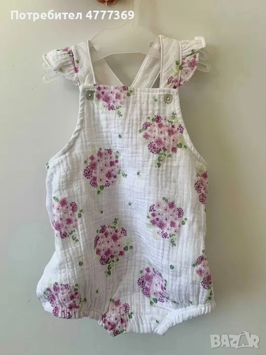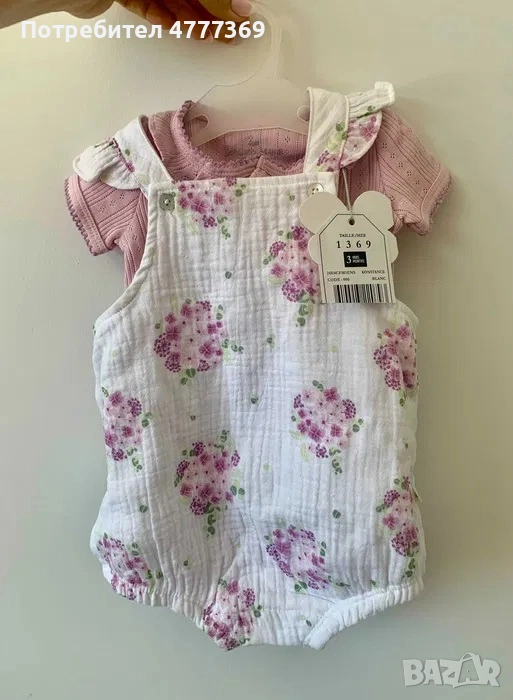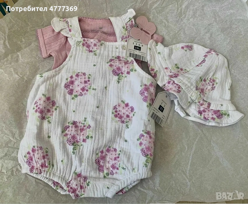 Чисто нов летен комплект от 3 части за новородено бебе момиче - боди, гащеризон и шапка.