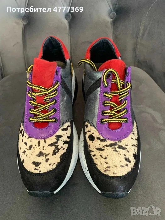 Маратонки естествена кожа с интересен принт и шарки