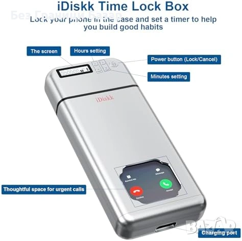 Кутия с таймер заключване за ограничаване на използването на смартфон