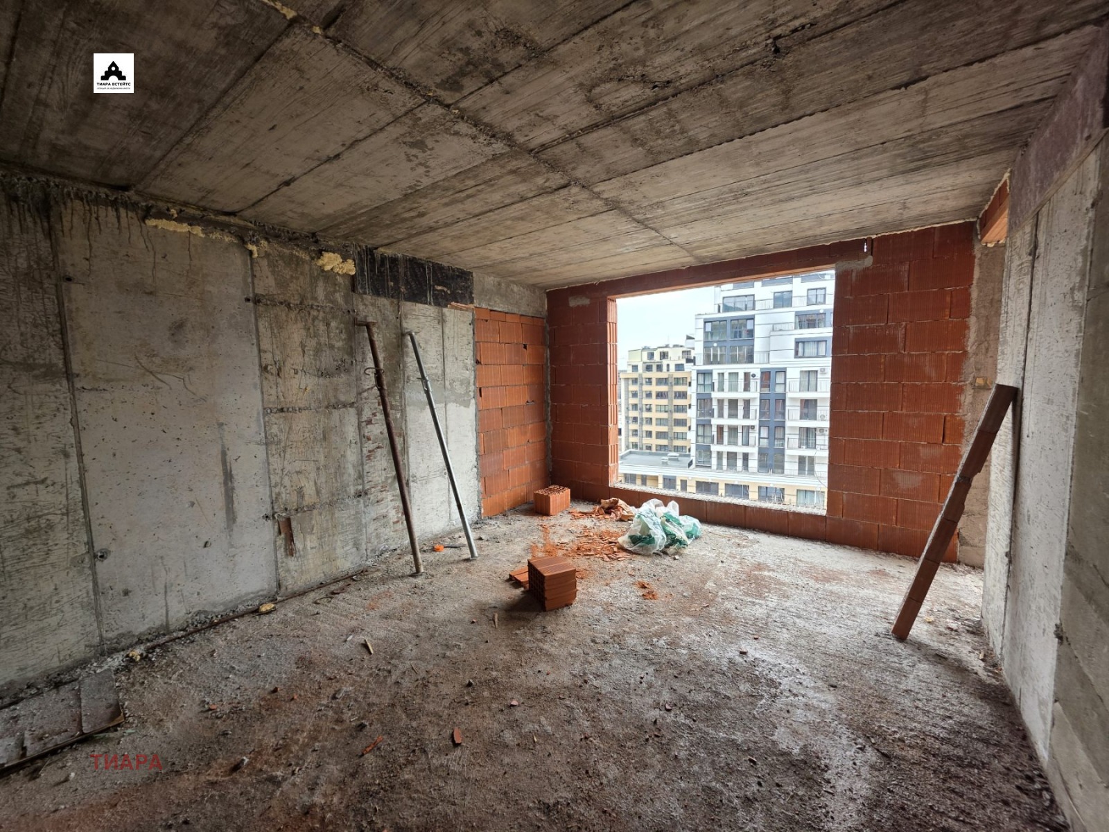 Апартаментът се намира на 6-ти етаж и е с функционално и удобно разпределение: входно антре, просторна всекидневна с кухненски бокс, спалня, баня с тоалетна и тераса.