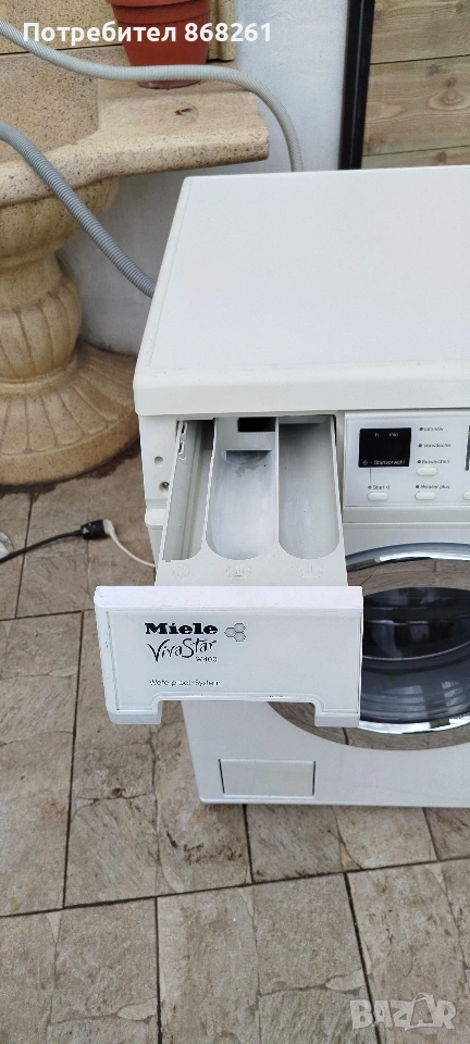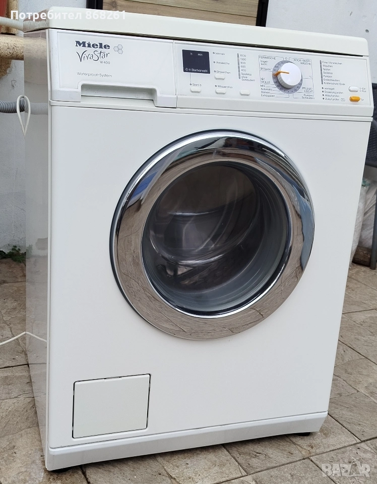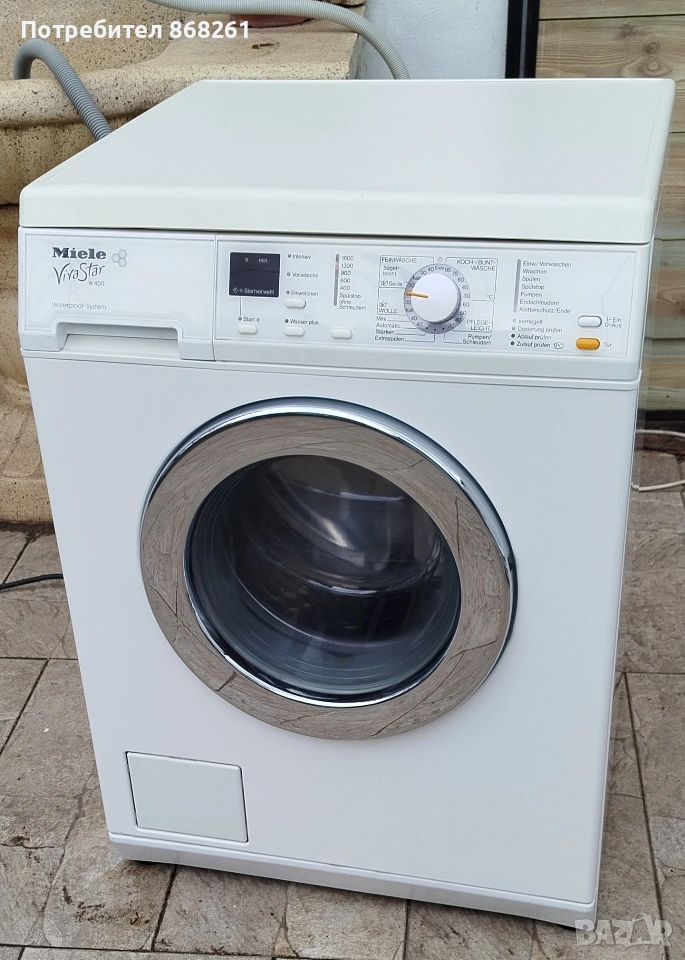 Пералня Miele W2523 WPS. Miele са известни със своето инженерно качество и дълголетие, а този модел е класически представител на тяхната здрава конструкция. Основни технически характеристики на Модел: W2523 WPS Капацитет: 5 кг пране (типично за по-старите, изключително здрави модели на Miele). Система WPS (Waterproof System): Това е системата за защита от наводнение на Miele. Тя включва двойно подсилен маркуч и сензори, които автоматично спират притока на вода, ако системата засече теч вътре в пералнята или по маркуча. Електрически данни: 220-240V, 50Hz, обща мощност 2100-2400W. Произход: Произведена в Германия. Ключови предимства на този модел Качествена изработка: Серията, към която принадлежи W2523, е известна със своята надеждност. Барабанът на Miele (често тип „пчелна пита“ или Honeycomb) е проектиран да бъде изключително щадящ към тъканите, като намалява триенето и износването на дрехите. Висока скорост на центрофугиране: Тези модели често достигат до 1600 оборота в минута, което извлича много влага от прането и скъсява времето за сушене. Интелигентни функции: Пералнята разполага с контрол на дисбаланса (за да не подскача при центрофуга) и сензори за нивата на пяната. Дълголетие: Частите, използвани в тези машини, често са метални, а не пластмасови, което позволява ремонт на практика на всеки компонент, вместо подмяна на цялата машина. Какво означава това за теб? Тази машина е в добро техническо състояние, тя вероятно ще пере по-добре и по-дълго от много модерни, „умни“ перални от по-нисък клас. Пералнята е обслужена,профилактирана и готова за експлоатация. Безплатен транспорт за Карлово и региона. Гаранционен и извън гаранционен сервиз