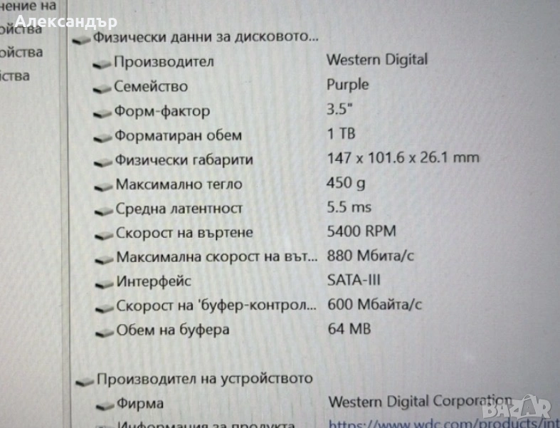 Здравейте, продавам 1TB HDD WD Purple 24/7 (S-ATAIII,5400rpm,64MB,3.5")