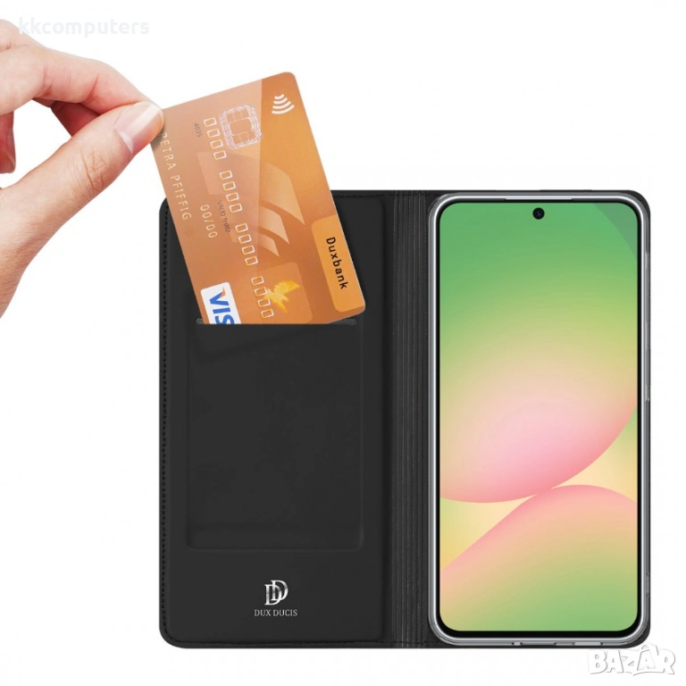 Изберете DUX DUCIS Skin Pro Series – елегантният кожен калъф със скрит магнит, слот за карта и регулируема стойка за вашия Samsung Galaxy A57 5G.
