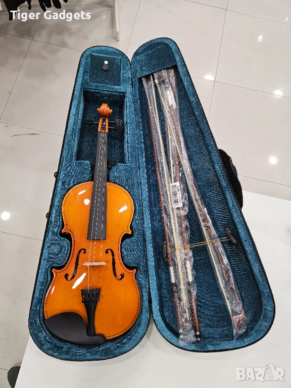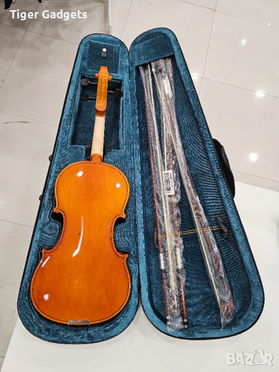 В комплекта са включени 3 броя лъкове, което е голям плюс, особено за начинаещи или при нужда от резервен. Наличен е и лек твърд кейс, който предпазва инструмента при съхранение и пренасяне.