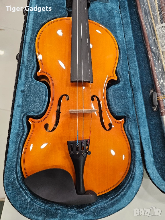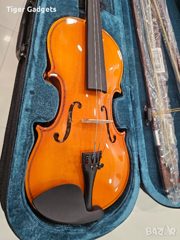 Цигулката е нова, но има някои липси, които са съобразени с цената – липсва една струна, както и единия ключ (горната част, която държи струните). Оригиналният колофон (rosin) също не е наличен.