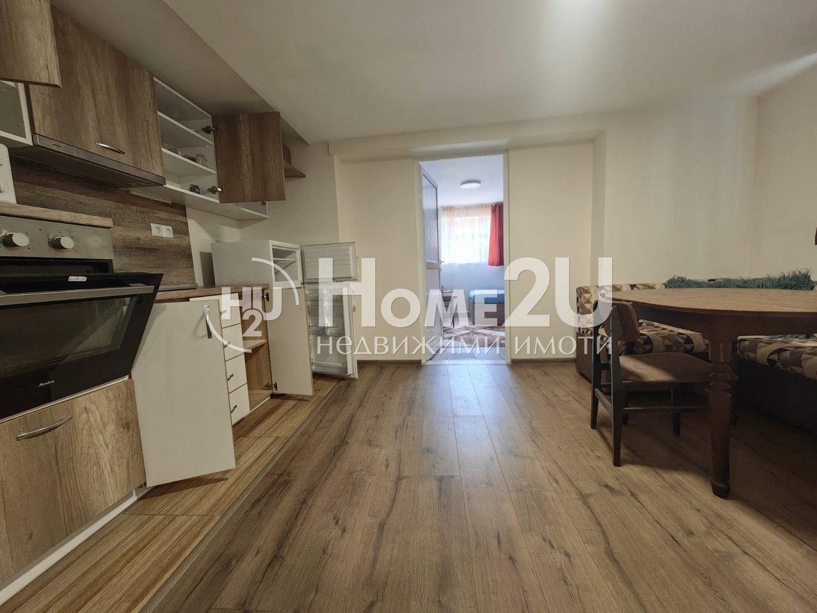 Жилището е функционално разпределено и се състои от кухня с трапезария, спалня и втора стая, обособена като перално помещение. Имотът предлага практично вътрешно разпределение, подходящо както за живеене, така и за инвестиция.