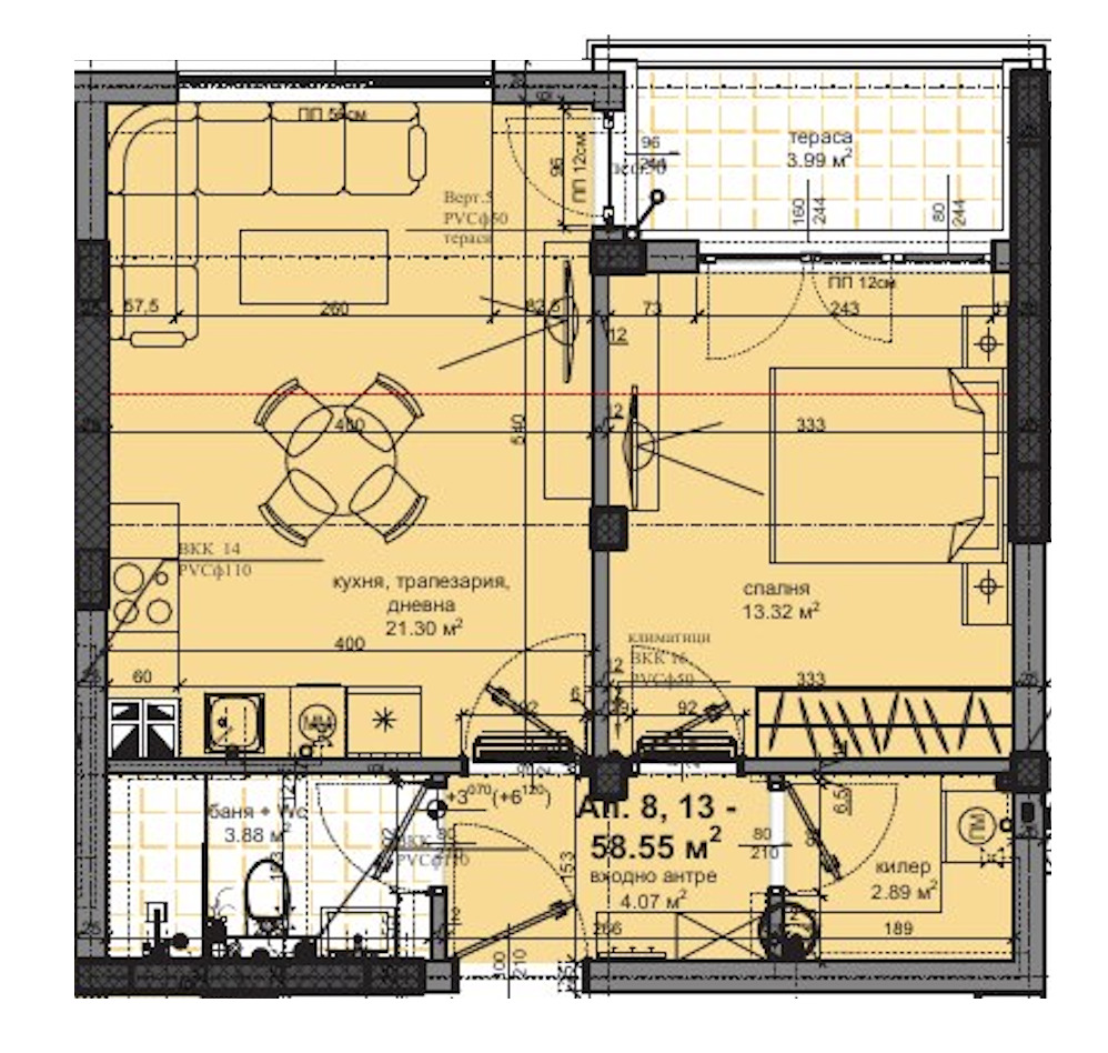 ➡Имотът се състои от антре, баня с тоалетна, килер, спалня, дневна с кухня и трапезария, тераса и е с обща площ от 71,15 кв.м.