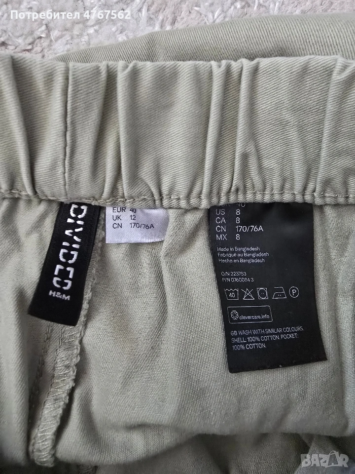 Панталон на H&M с висока талия тип карго, памучен. Размер 40/М