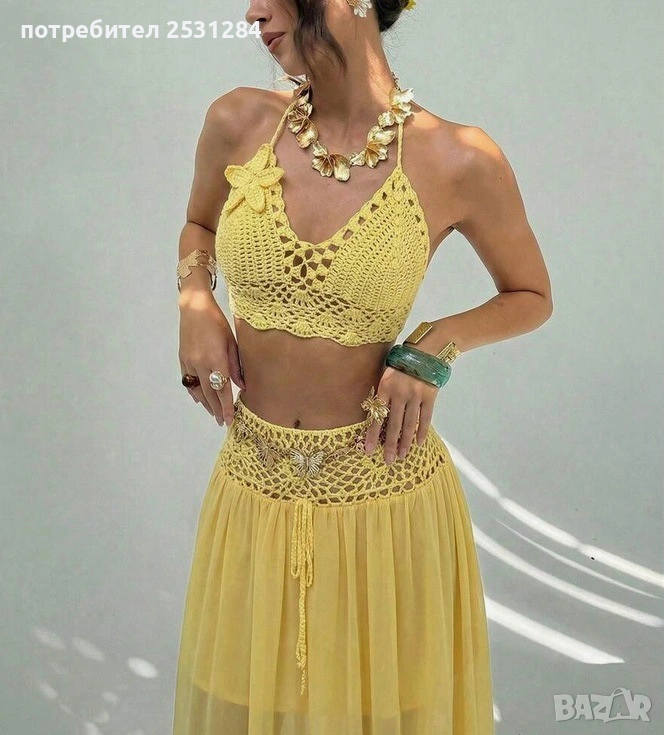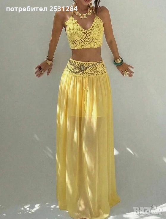 плетен топ без ръкави и дълга пола с красив 3D цветен декор. Стои изключително