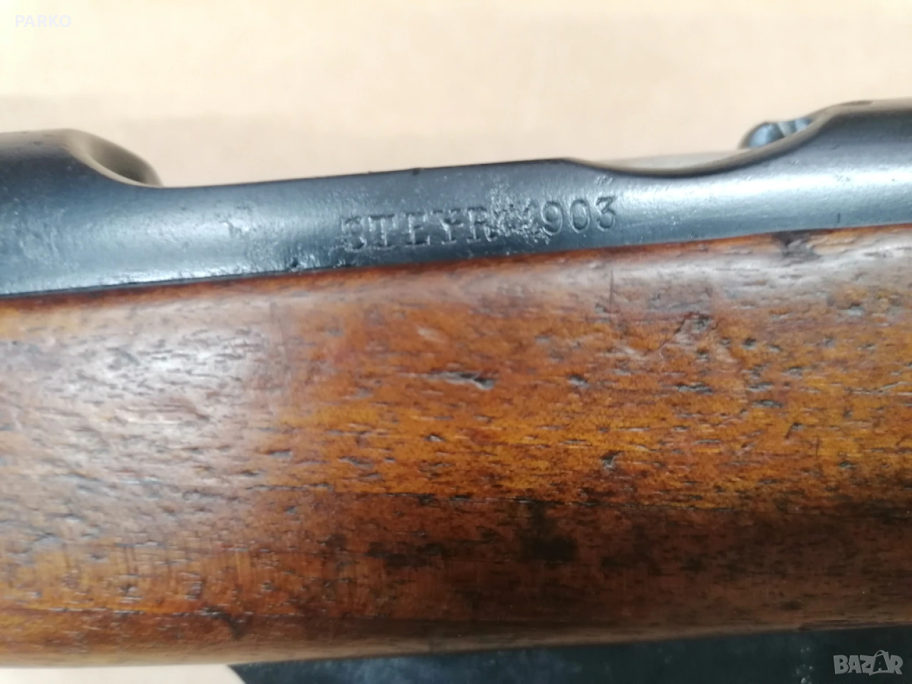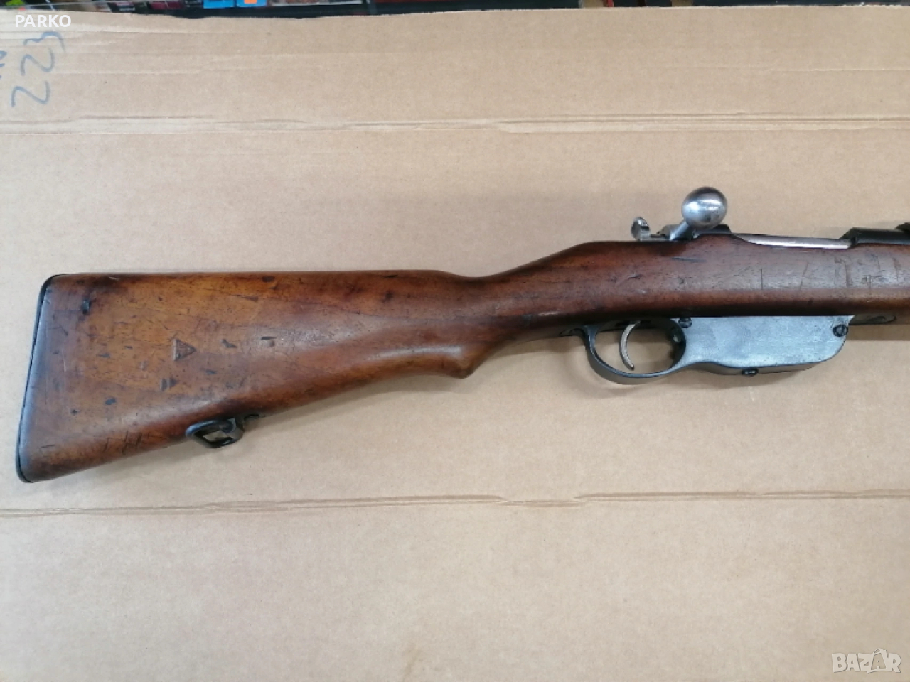 Идеално състояние. Деактивирана пушка Щаер Манлихер м 95 М. Много рядко изпълнение. Навремето е пригодена за Маузерови боеприпаси. Deactivated shotgun manlicher M 95 M steyer. София бул Столетов 38 срещу централен затвор София. Оръжеен магазин.