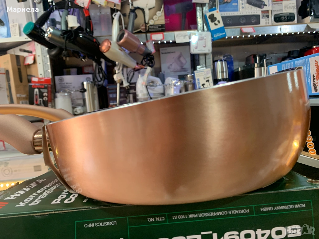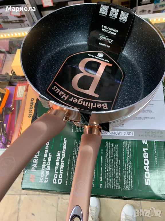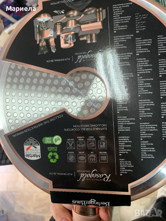 Подходящ е за всички видове котлони (и за индукционни).