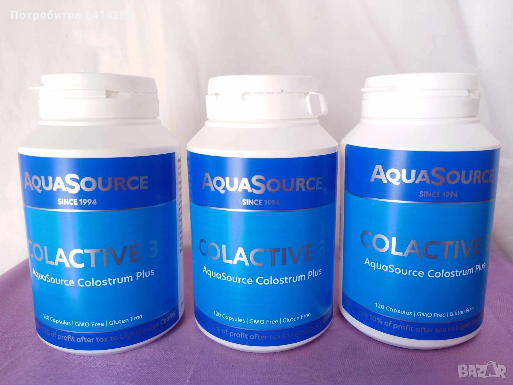 AquaSource Коластра - коластрата е „първото мляко, произведено от майката, богато на допълнителни хранителни вещества и антиоксиданти. AquaSource използва коластра от крави, която съдържа между 10 и 20 пъти повече хранителни фактори и антитела от човешката.