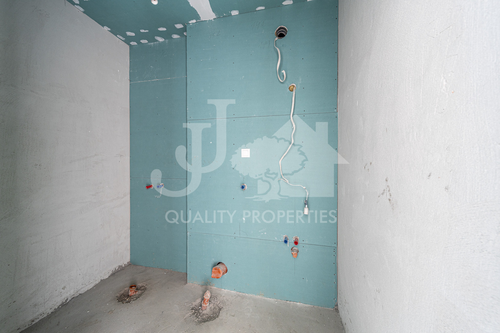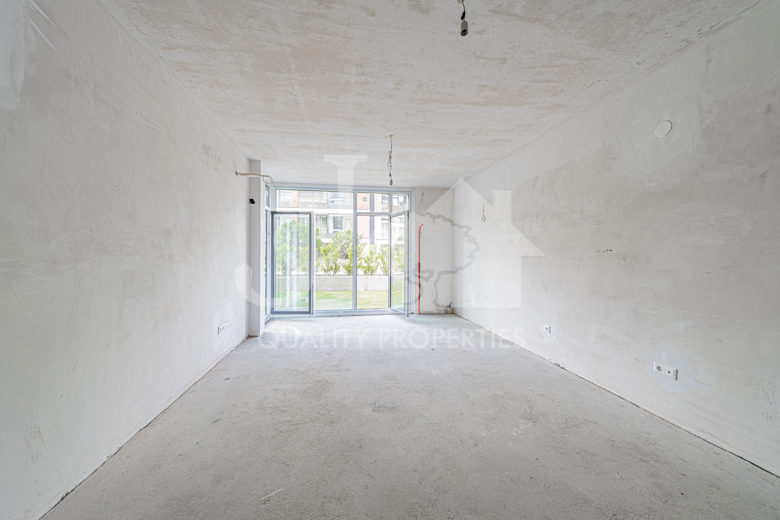 Апартаментът се намира на партерен етаж с излаз на собствен двор, изложението е запад/север, а общата му площ е 76 кв.м. Разпределение: малък коридор, където е разположено газовото котле, голям хол, отделна спалня и баня с тоалетна.