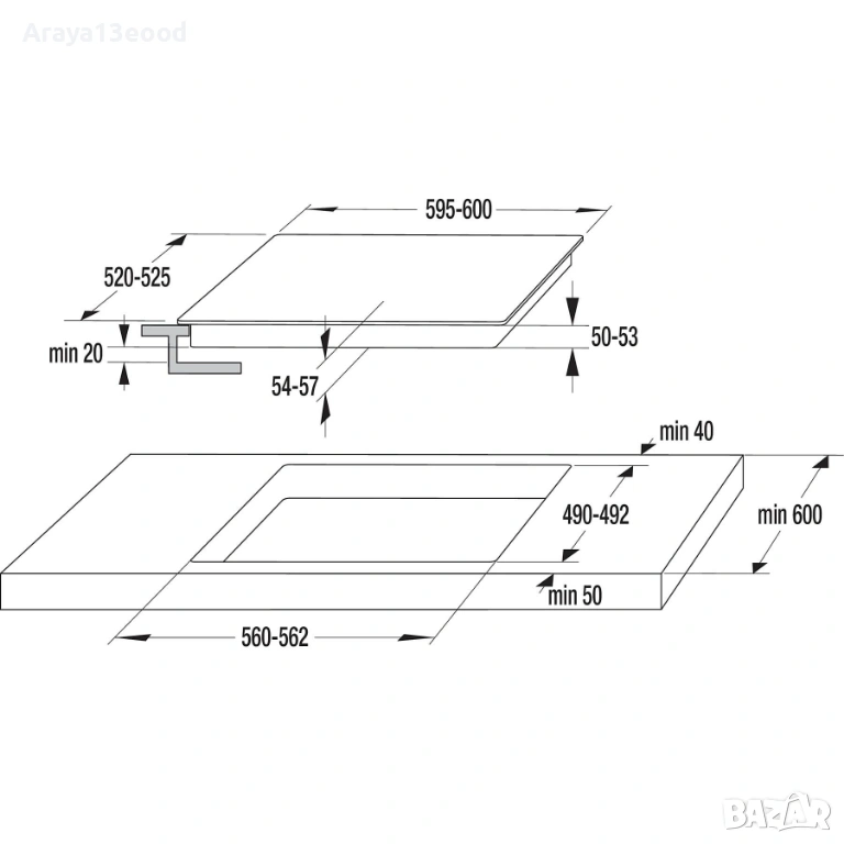 - Дълбочина на отвора: минимум 49 см