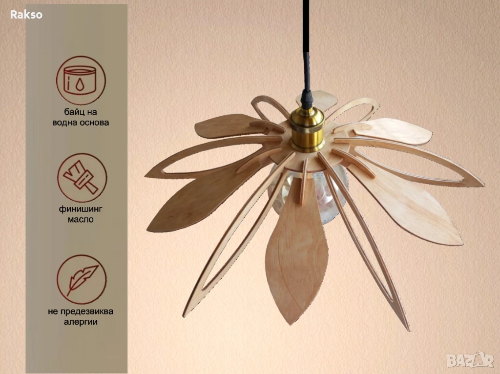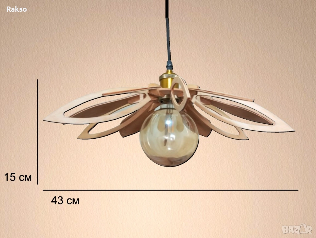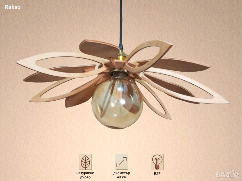 Декоративното осветително тяло е изработено от първокласен брезов