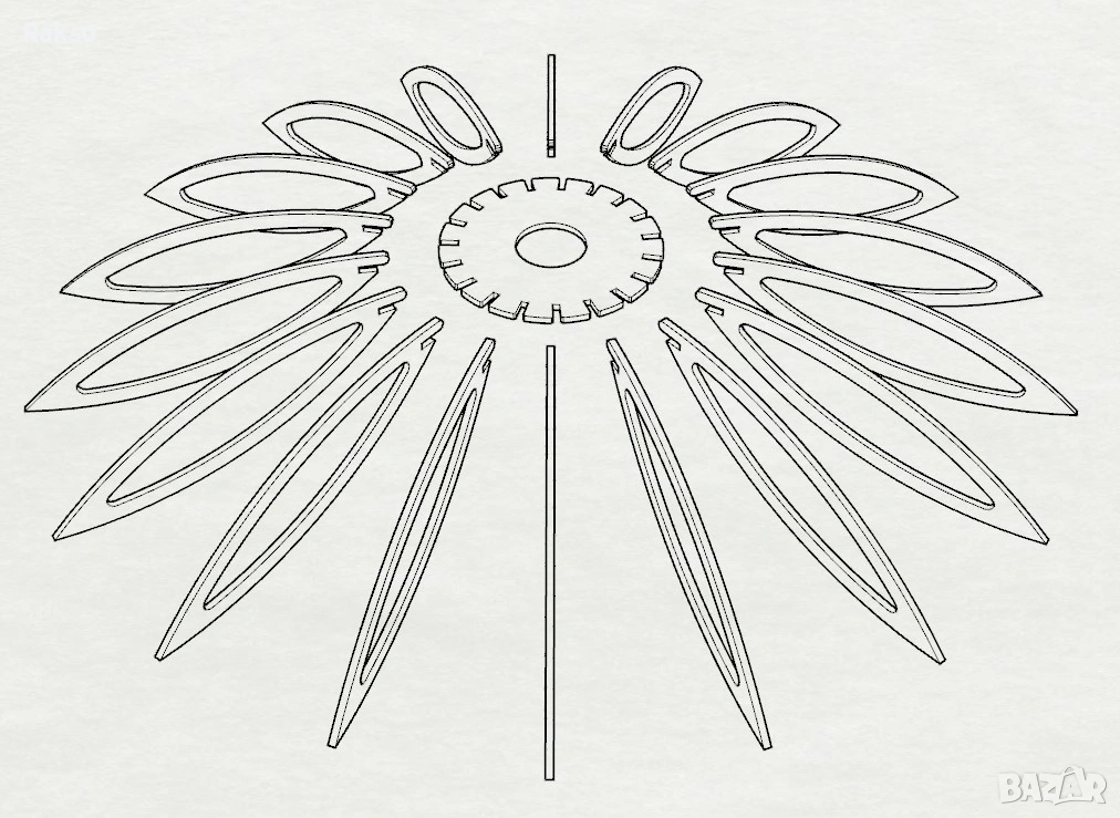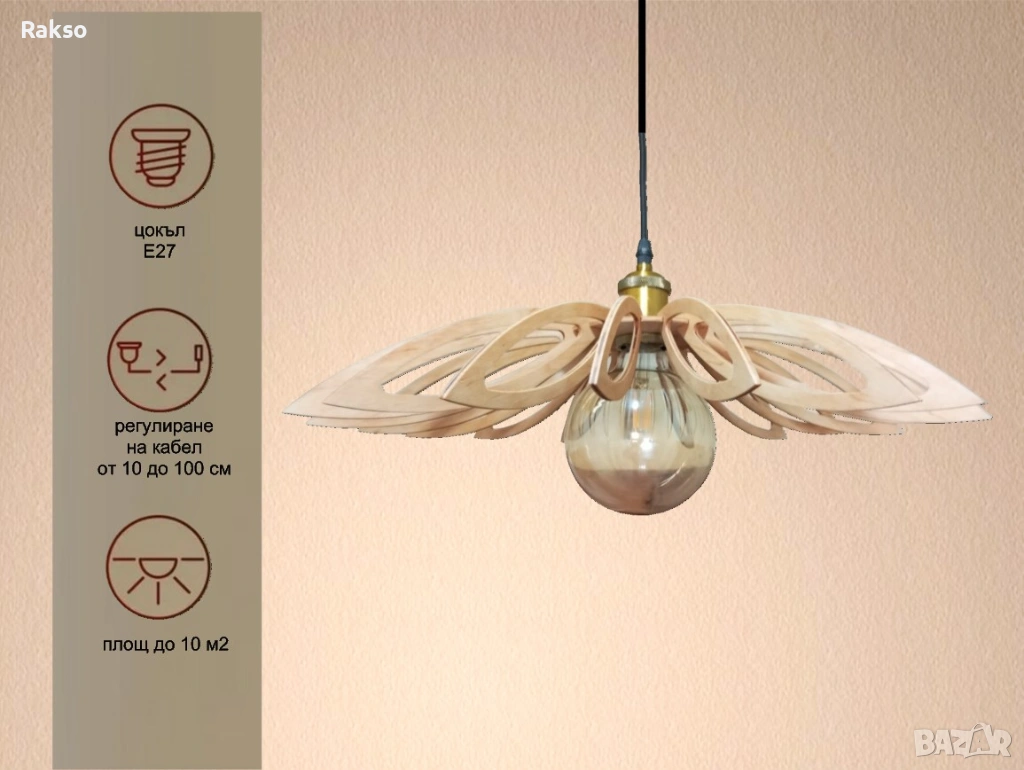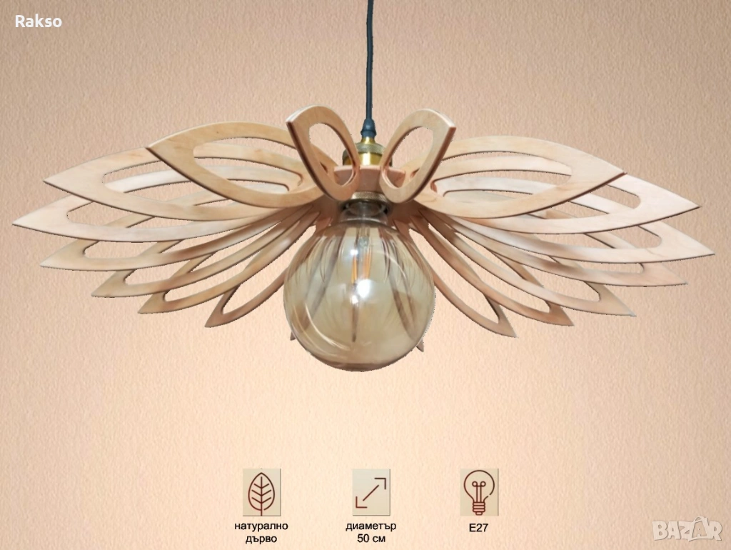 Полилей от дърво. Интериорно осветително тяло за таван ”Ампера”