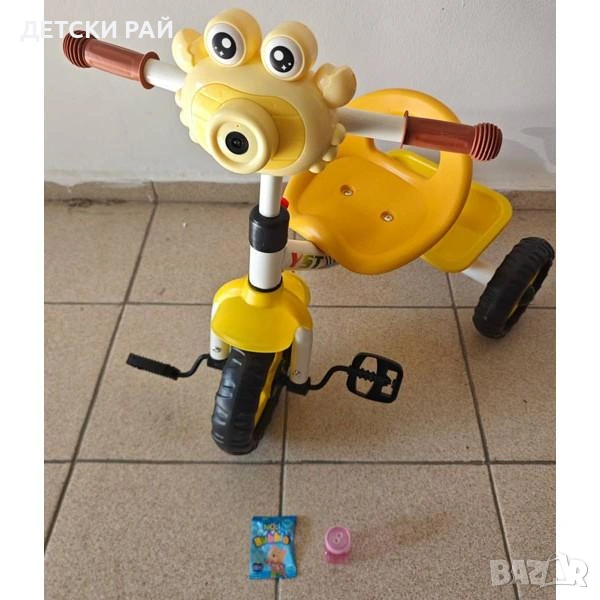 Чрез бутон се стартира мелодията, започват да излизат мехури и има светлина.