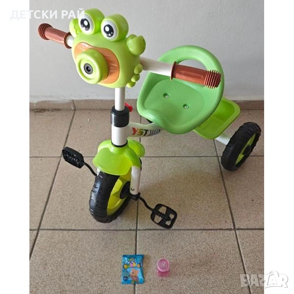 Рамката и кормилото са метални, седалката e от ПВЦ, гумите са материал тип ЕВА.