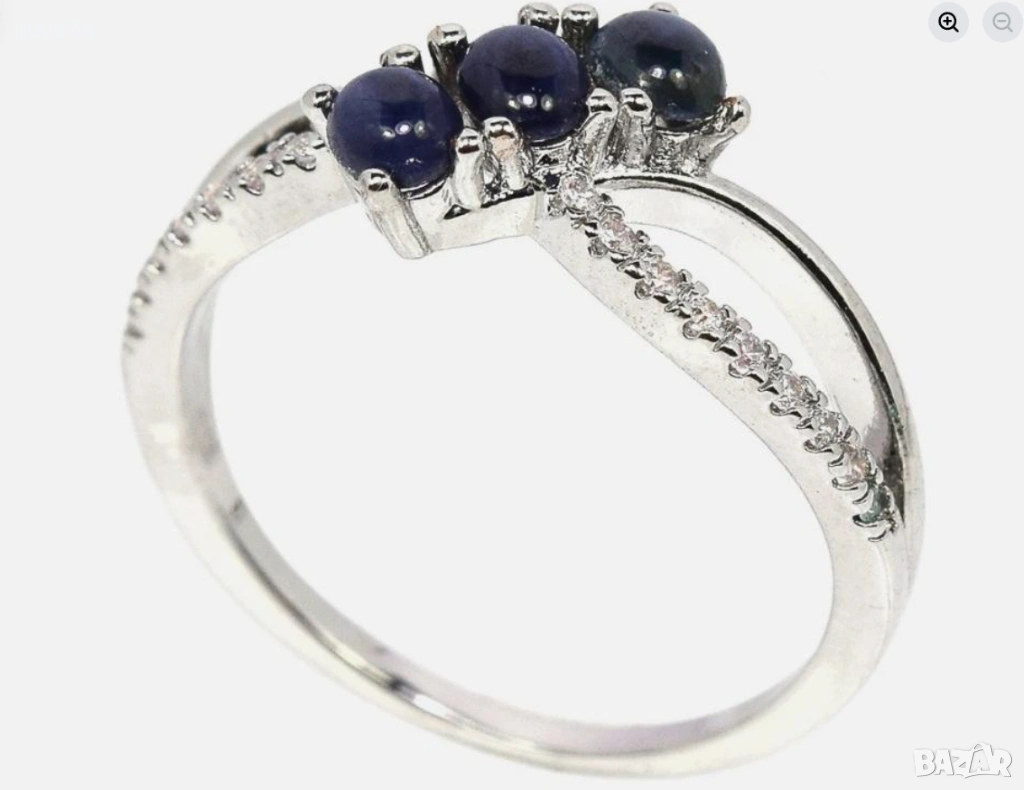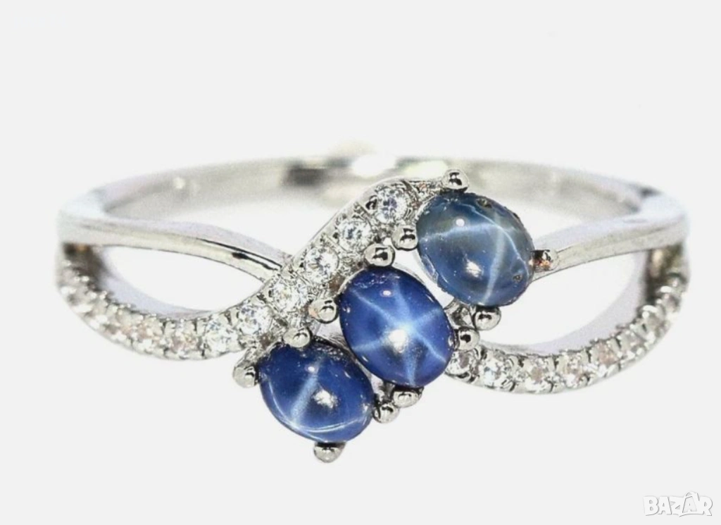 СРЕБЪРЕН ПРЪСТЕН СЪС ЗВЕЗДНИ САПФИРИ (ТАЙЛАНД) → Обява 53975306