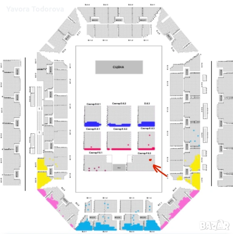 Места: Вход В.0, Сектор F.0.2, Блок F.0.2, ред 6, места 19 и 20