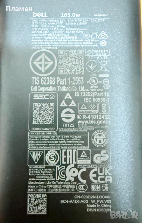 зарядно за лаптоп Dell – 165W, USB-C (Type-C). Идеално за мощни модели като