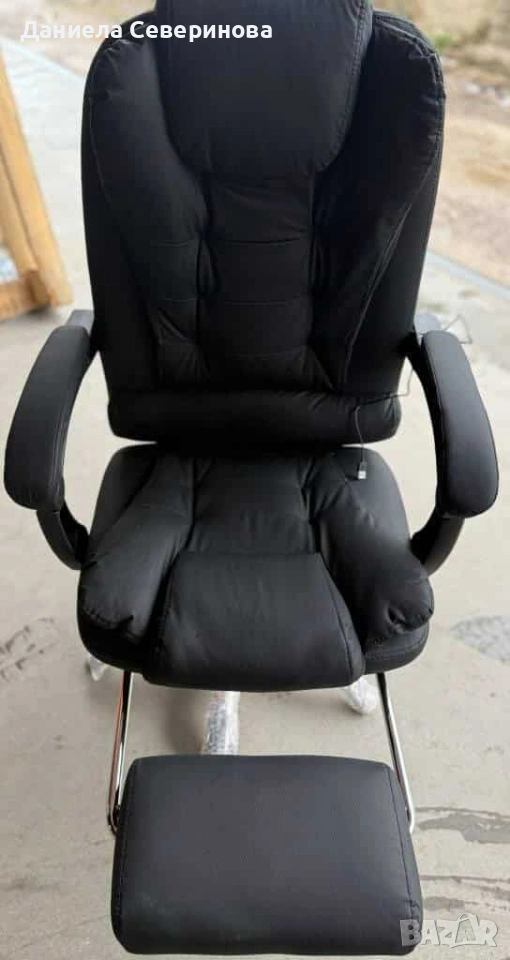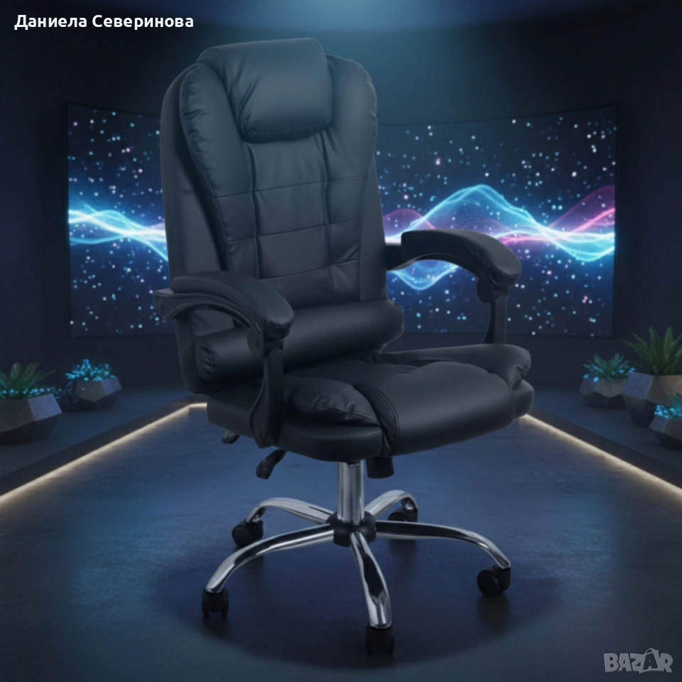 Ергономичен офис стол с лумбална опора от еко кожа в черен цвят → Обява 53975657