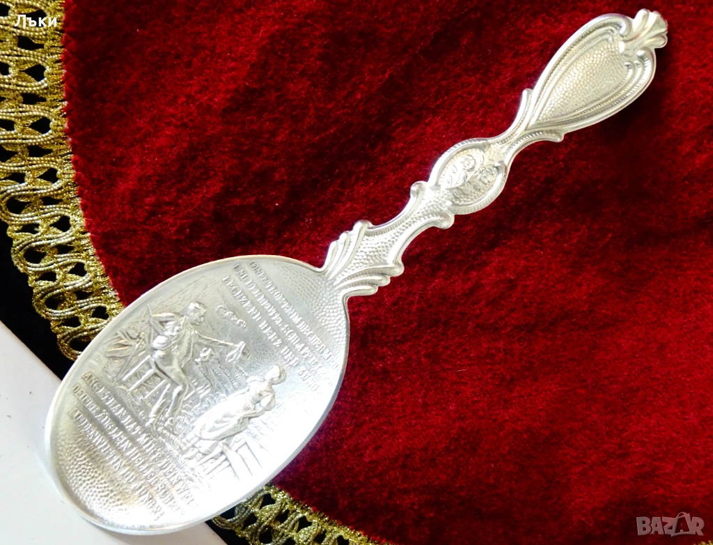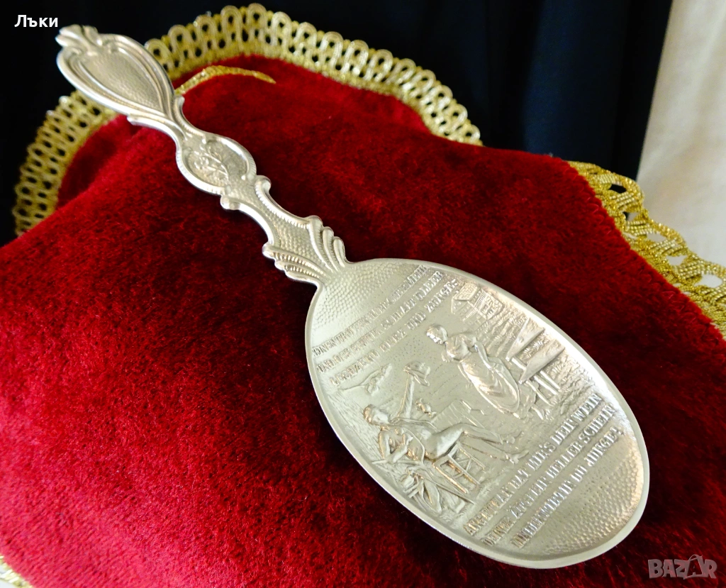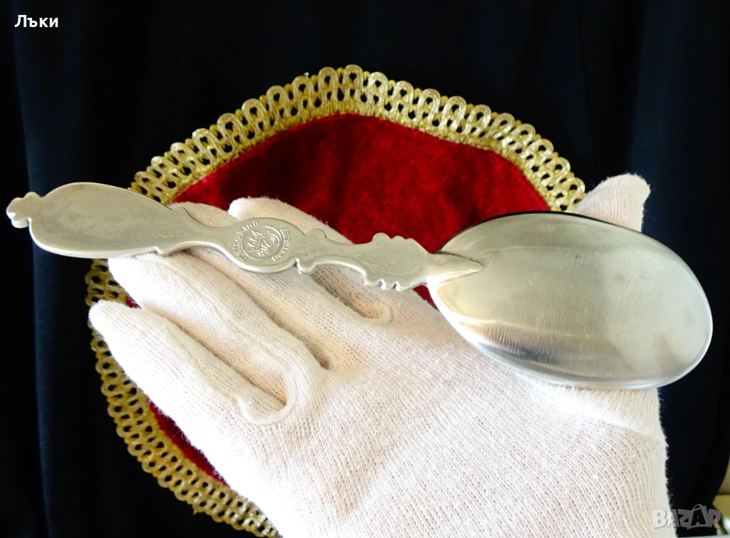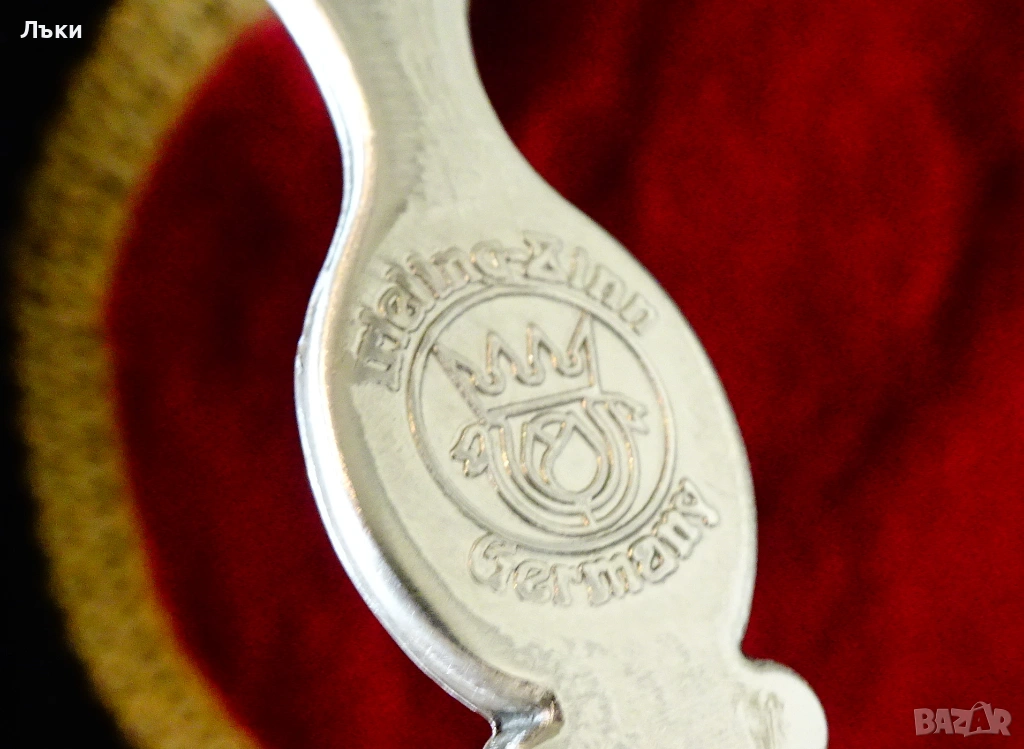 Стара немска калаена лъжица,майсторска ръчна изработка от
