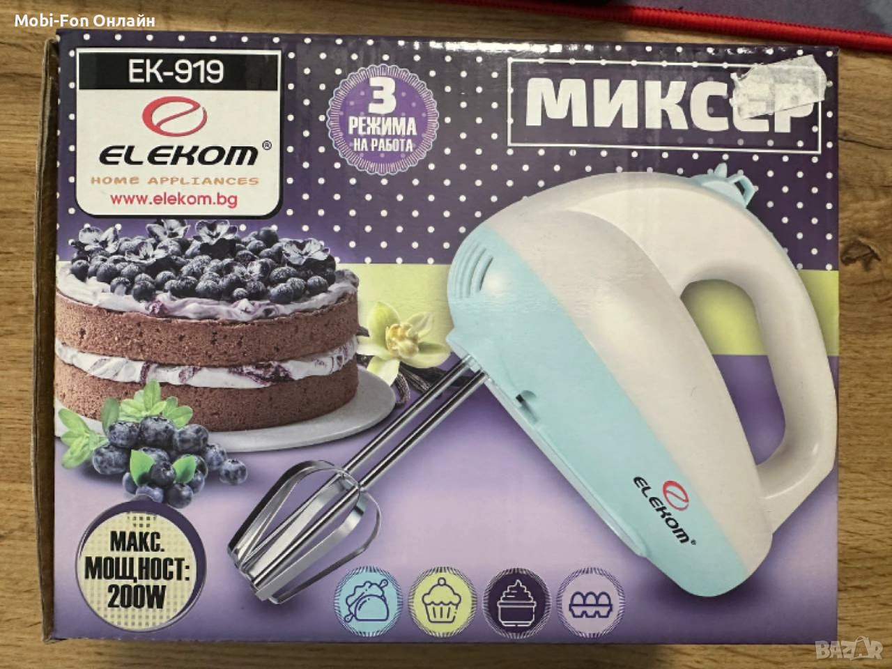 Миксер ЕК-919, 200W, 3 Степени на работа, Бъркалки за тесто, Бъркалки за яйца → Обява 53975781