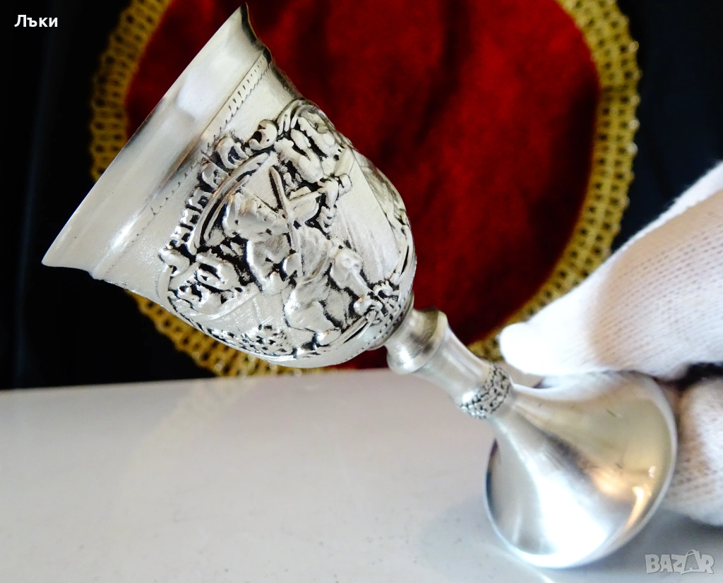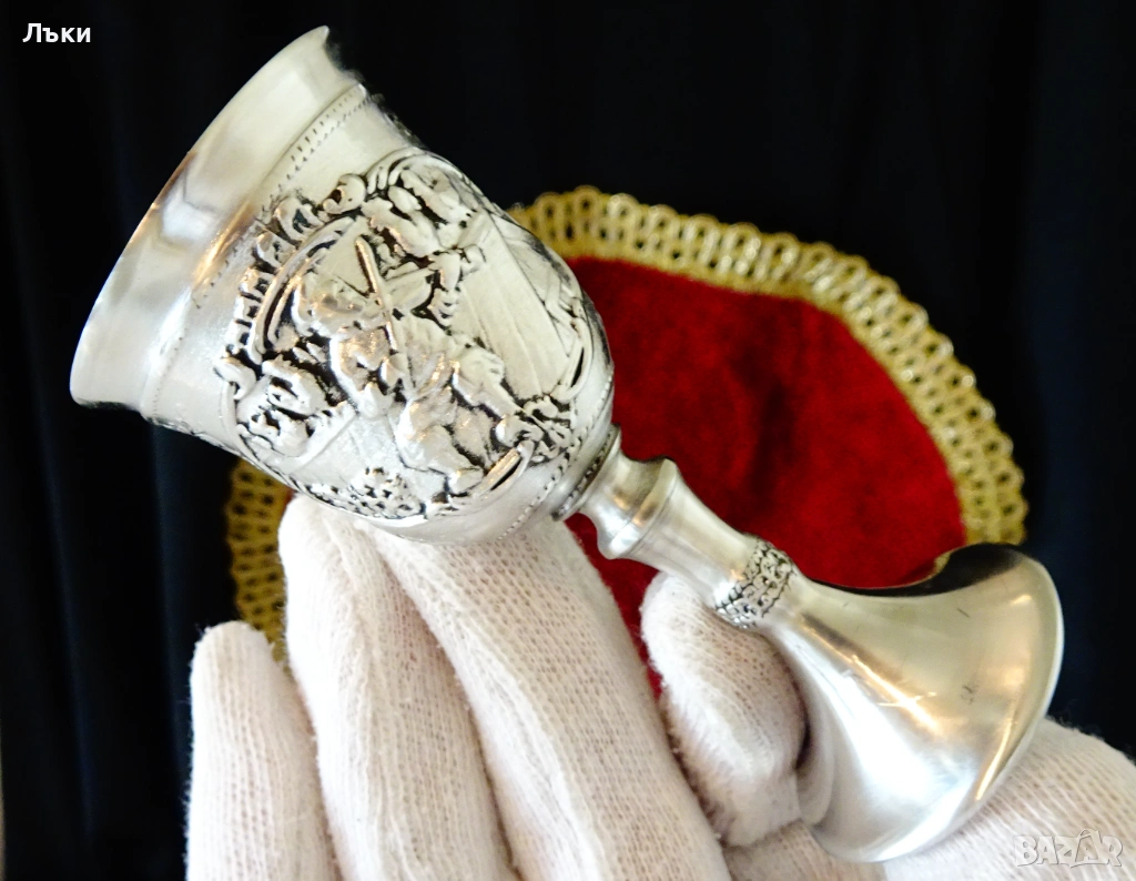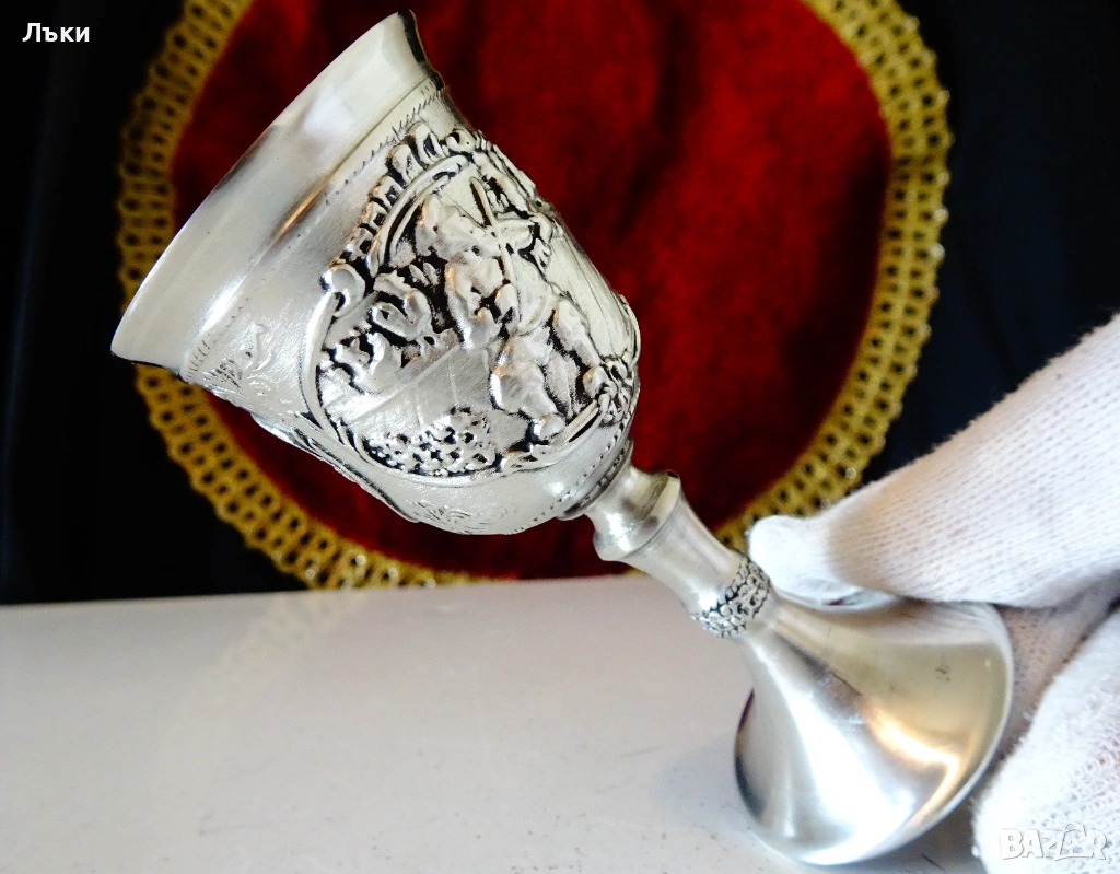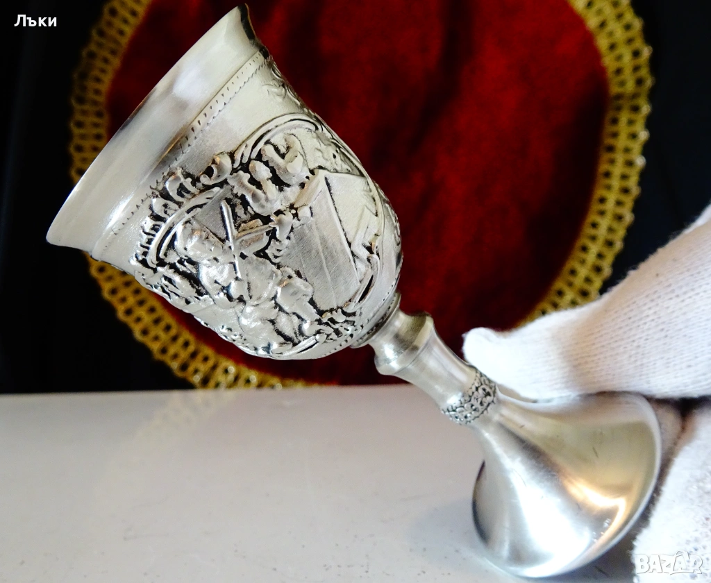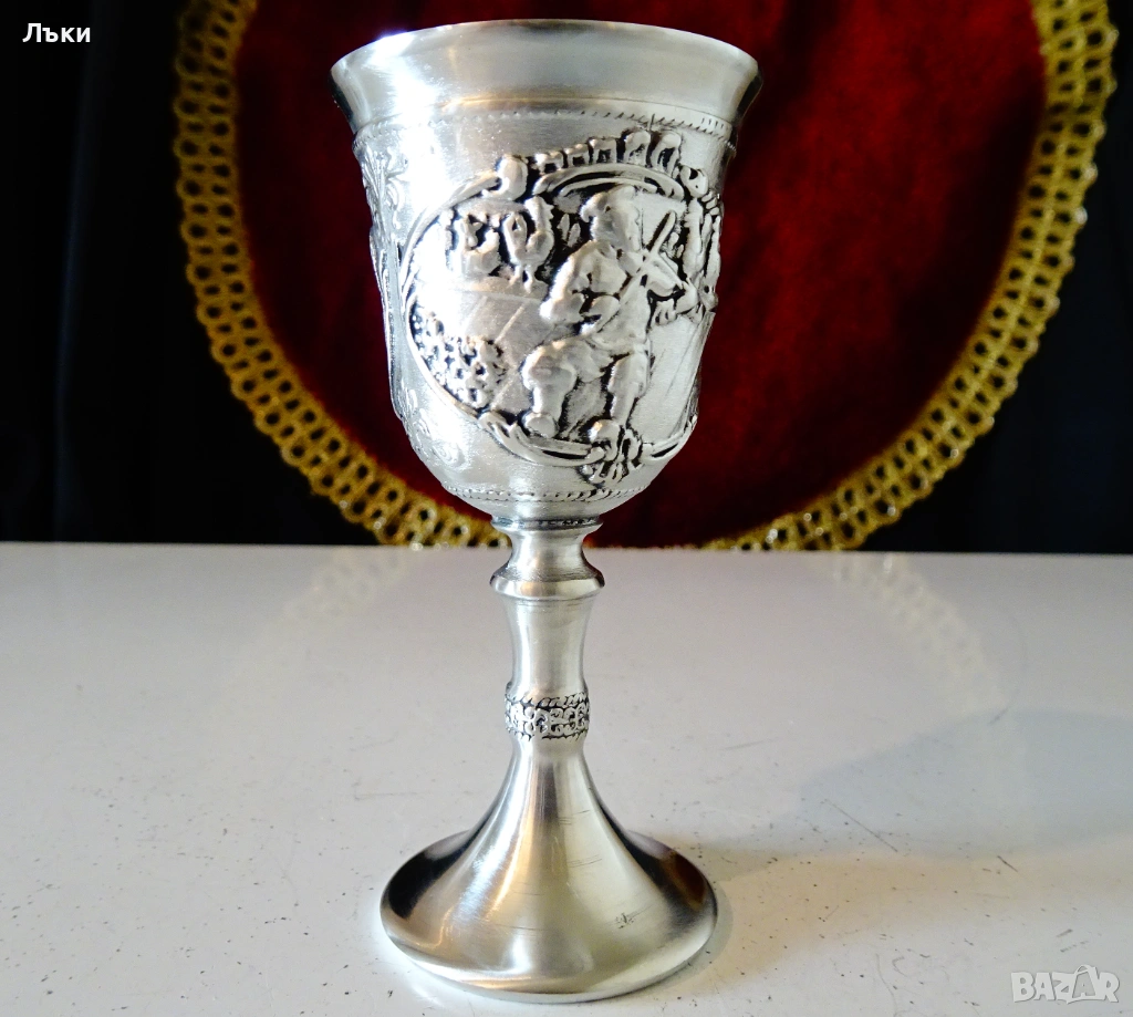 Стара немска калаена чаша на столче за