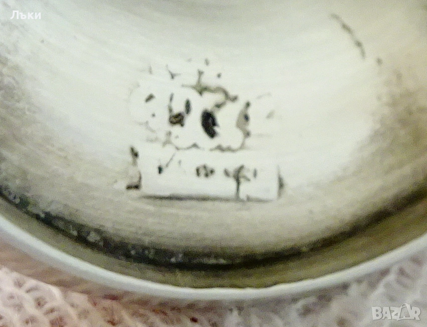 инициалите на световно известната фабрика SkS.Декорирана с прецизно изваяна релефна картина Цигулар на