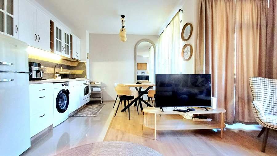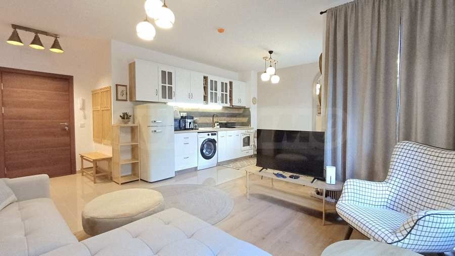 Жилището е комфортно обзаведено и оборудвано с всичко необходимо за комфортно пребиваване - вградена кухня с печка, пералня, хладилник, ТВ и др. Отоплението е на ток.