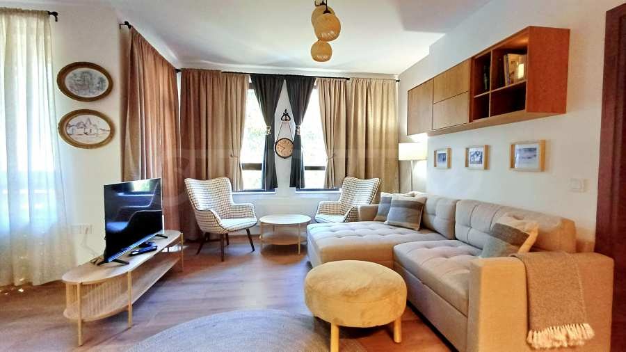 Представяме супер уютен и стилно обзаведен двустаен апартамент под наем в отличен апартаментен комплекс сред природата на Родопите, в близост до Пампорово и Левочево.