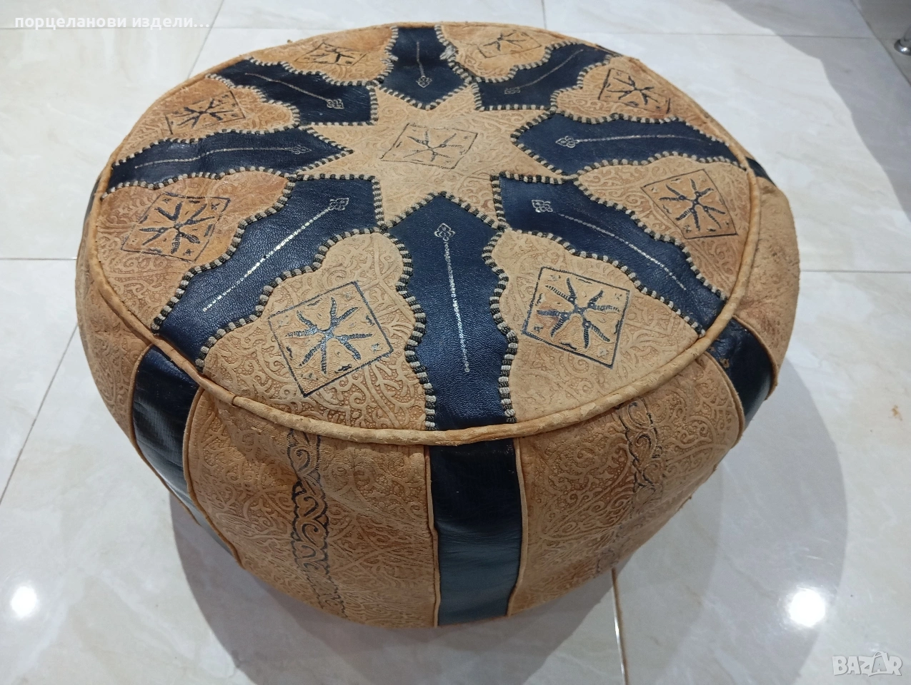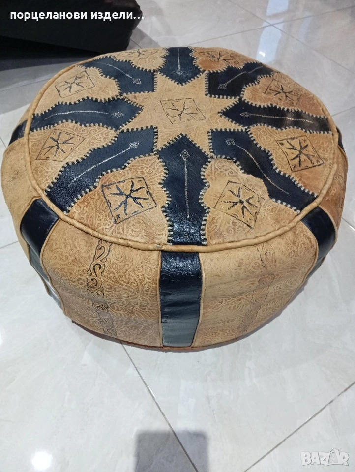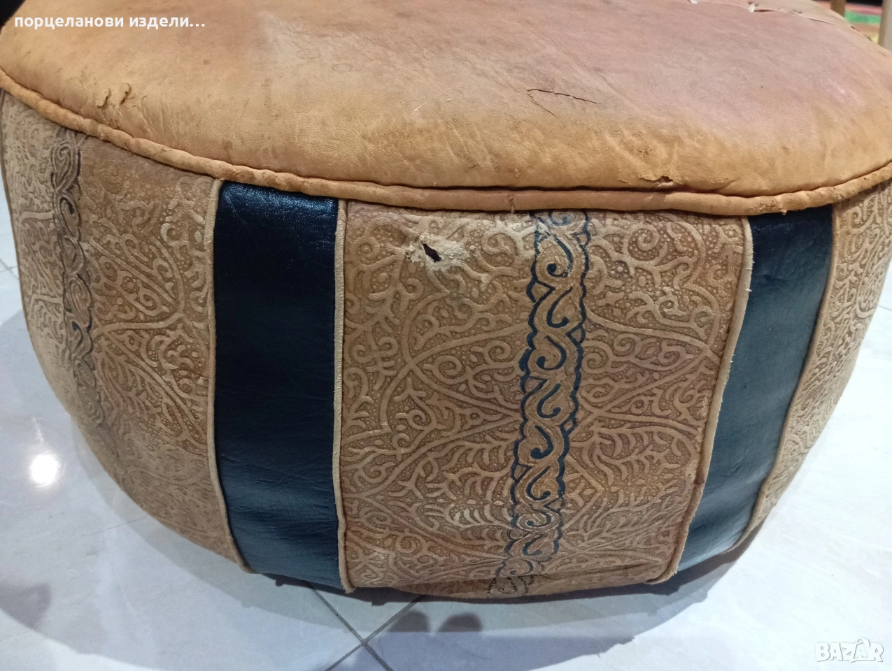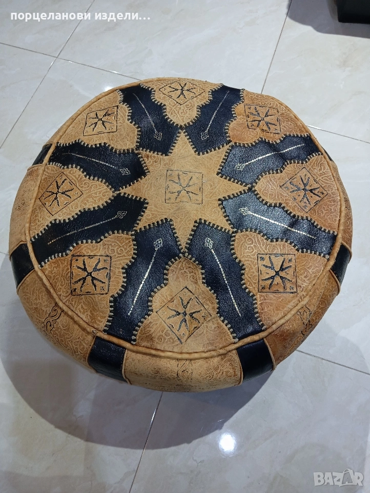 Автентичен марокански пуф табуретка ръчно изработен от естествена кожа → Обява 53976352