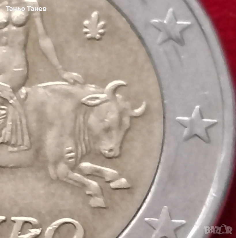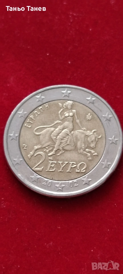 Цена и Рядка Гръцка монета от Две Евро. Монетата е със четири грешки при изсичането. И със отличаващи символ (S). Монетата е произведена за първата серия от 2002г Гръцко Евро. Монетата е изсечена във чужд Държавен монетен двор а този чужд монетен Двор се намира във Финландия от там идва и нейният отличаващ символ (S). Само лично предаване.