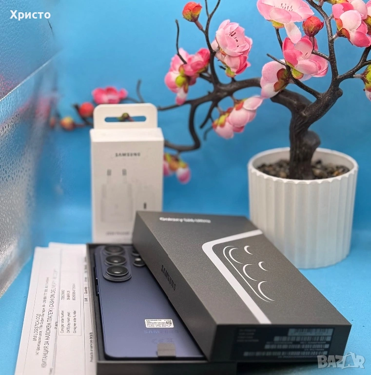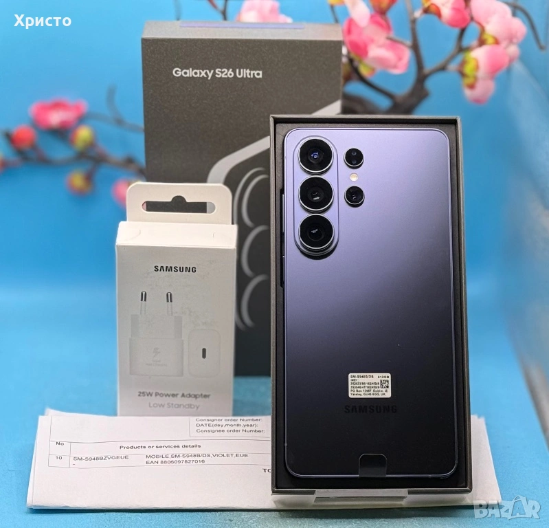 Закупен е на 06.03.2026 г. от Samsung България и има валидна гаранция от 2 години към Samsung. Работи безупречно и е напълно отключен – съвместим с всички оператори. Устройството е платено в кеш и няма абсолютно никакъв риск от заключване. Продава се с кутия и подарък оригинален адаптер на Samsung. Без бартери!!!