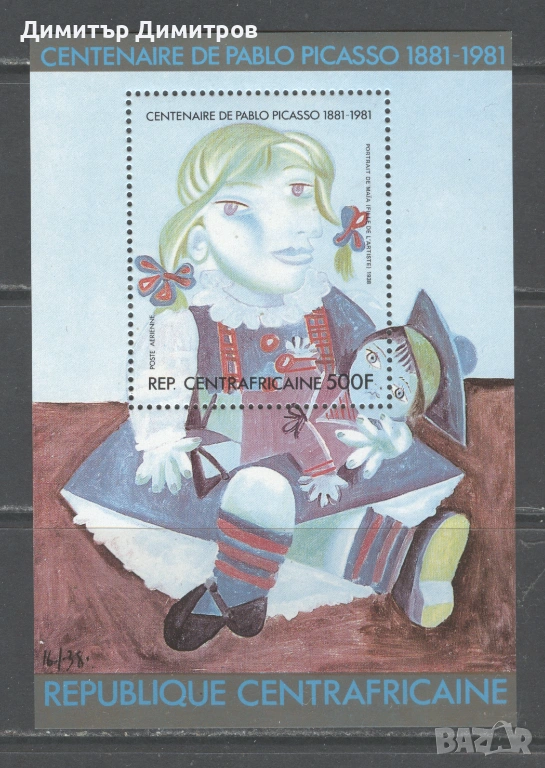 Центр.Африка Пабло Пикасо 1981 - 100г. от рождението - портрет на Майя 1938г., блок въздушна поща,чист с оригинално лепило,без лепенка