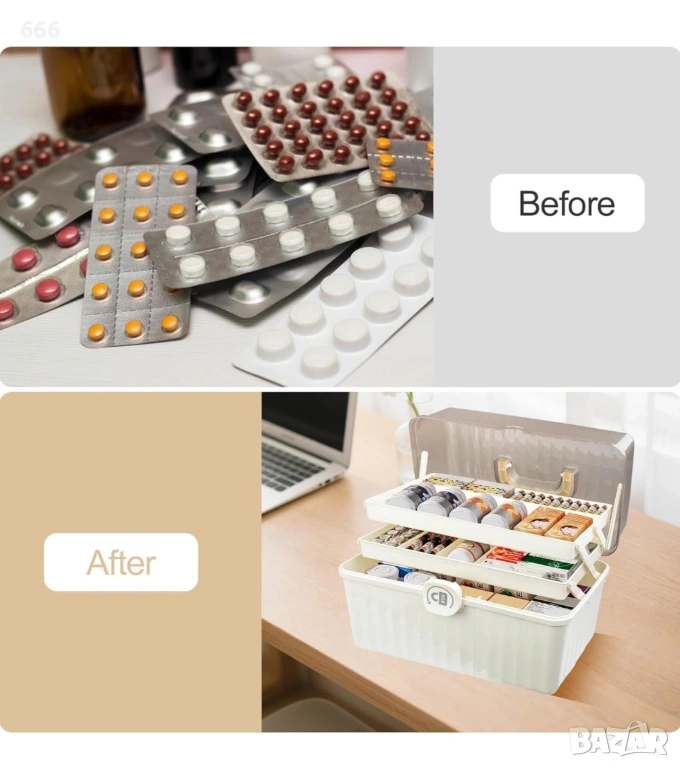 Организация: Нашата кутия за съхранение на лекарства има 3 нива, които са идеални за сортиране на таблетки, капсули и хапчета от всякакъв размер. Разделянето на стъпала и прозрачното покритие улесняват намирането и изваждането на лекарствата. В допълнение, ясната класификация е практична и визуално привлекателна.