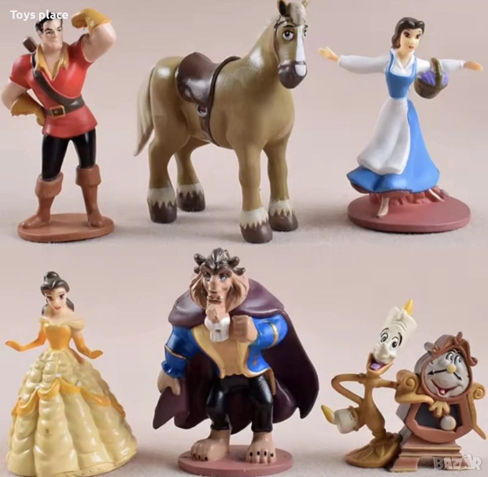Комплект 6 броя стабилни масивни фигурки Красавицата и звяра