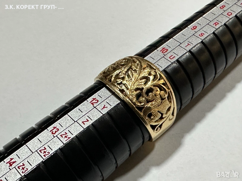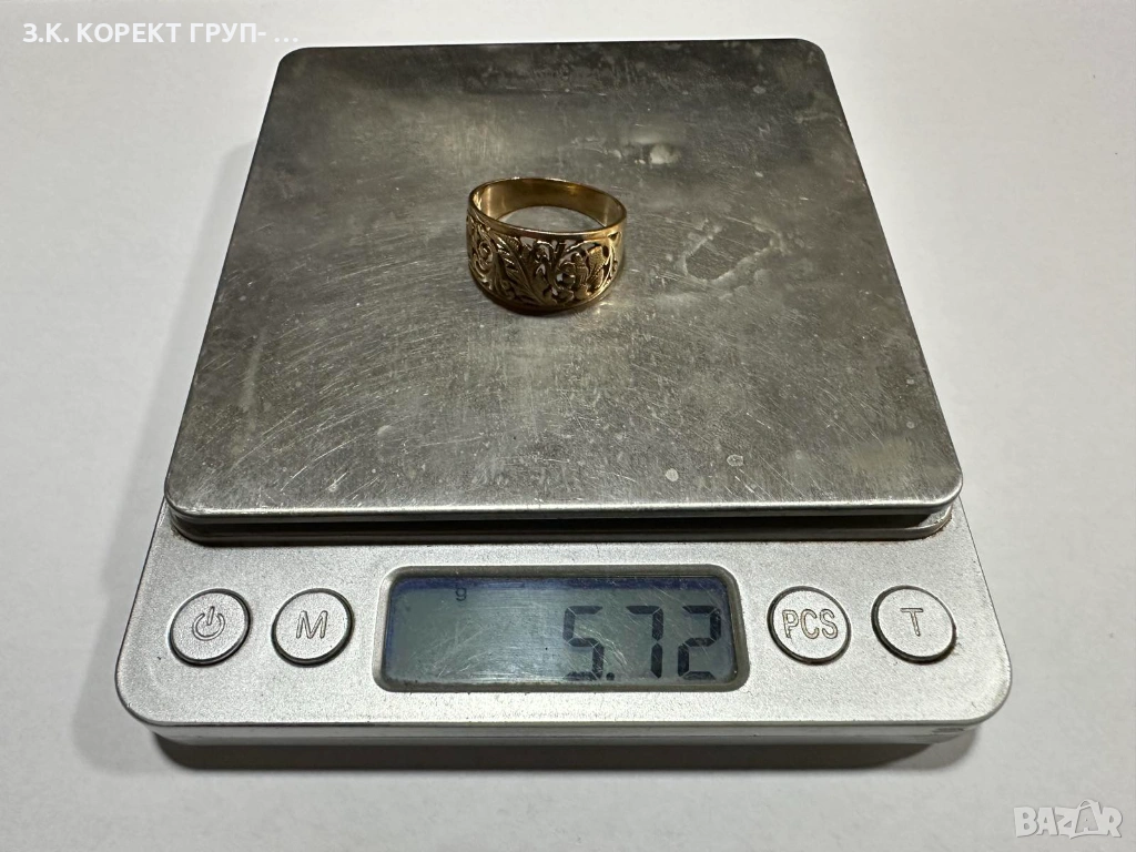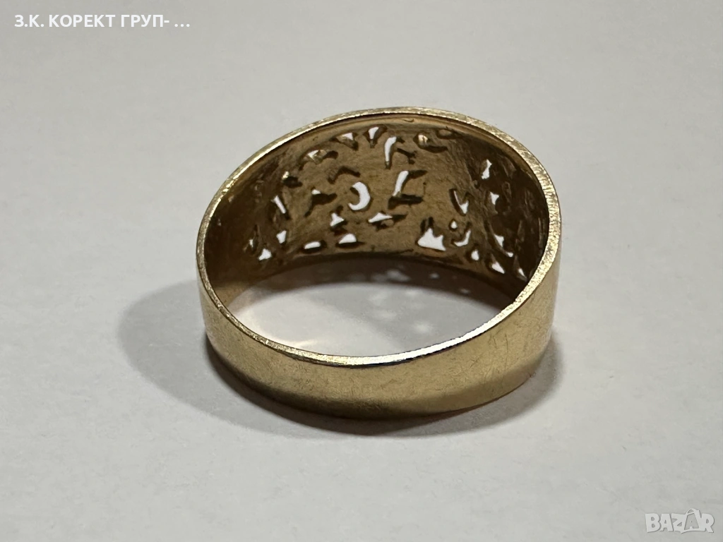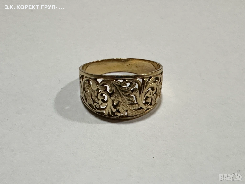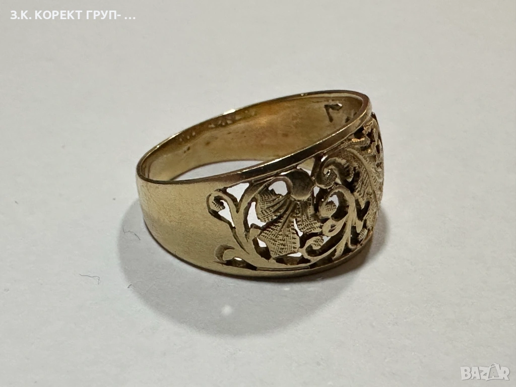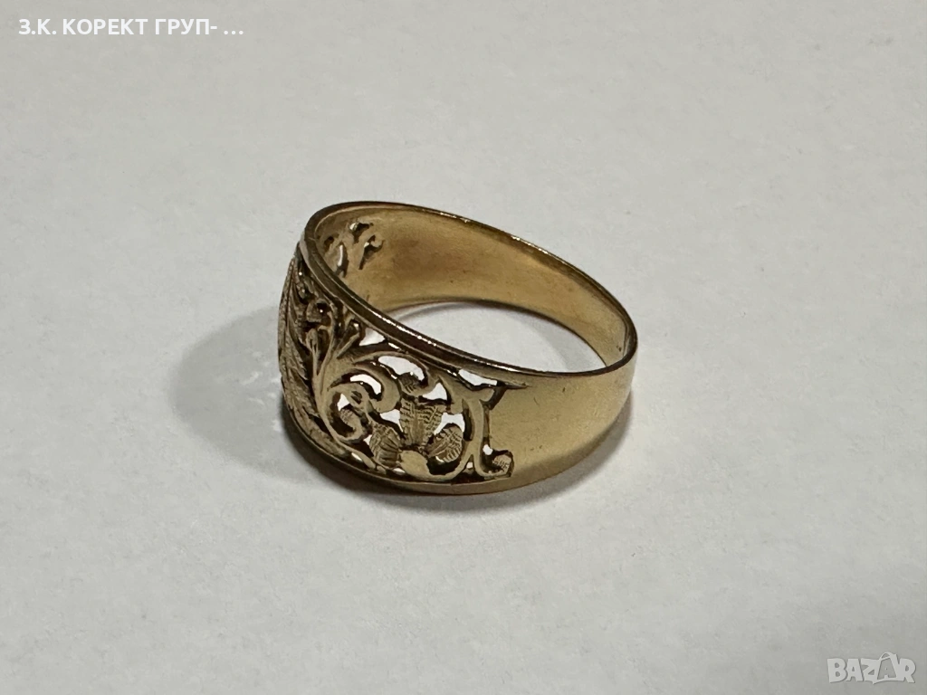 Златен пръстен от 14 карата злато. Използван. В добро състояние. Без сериозни следи от употреба.
