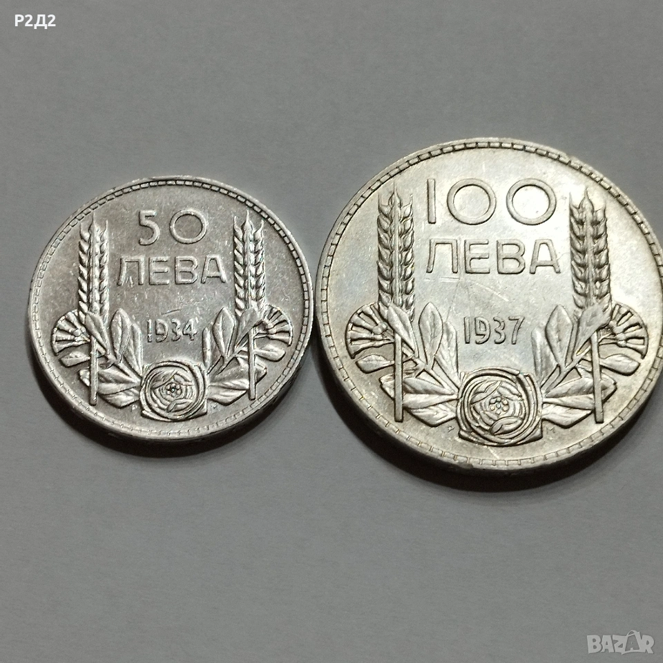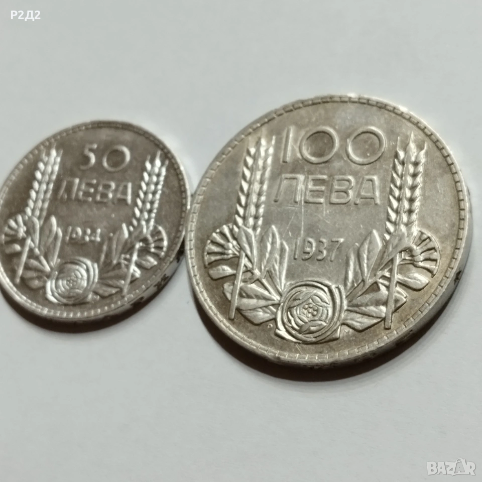 Две стари сребърни монети 50 лева от 1934 г и 100 лева от 1937 година. Цената е обща!