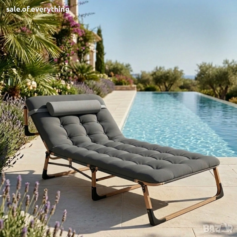 Сгъваемо къмпинг легло с матрак (180 см) – Регулируем градински шезлонг с възглавница → Обява 53977435
