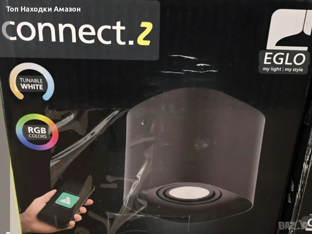 Интелигентна лампа за таван от серията EGLO Connect.z, която предлага регулируема бяла светлина и RGB цветове.