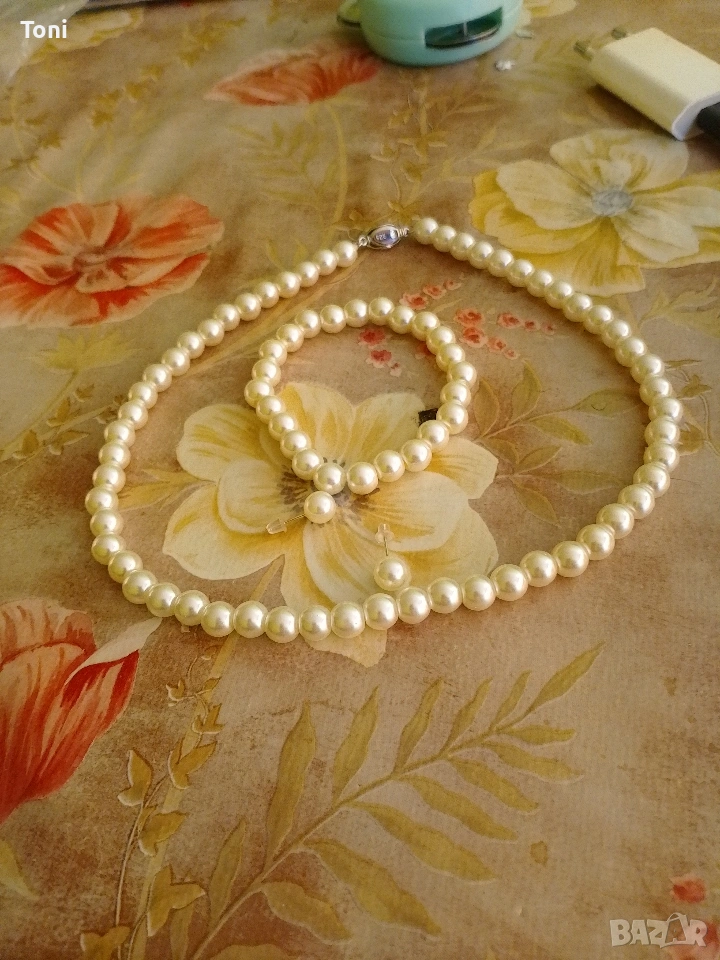перлено колие три броя обеци и гривна, снимка 1 - Колиета, медальони, синджири - 53977693 перлено колие три броя обеци и гривна, снимка 2 - Колиета, медальони, синджири - 53977693 1/2