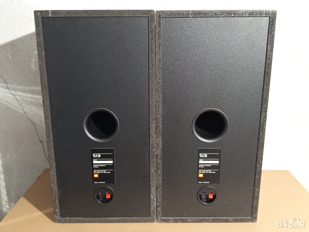 Трилентови тонколони JBL TLX-25. С добър външен вид и перфектно функциониращи. Тонколоните са със задно разположен басрефлекс, 8″ нискочестотни говорители. Габаритни размери: в. 55cm, ш. 25cm, д. 25cm. Номинална мощност 80w, музикална мощност 120w, импеданс 8ohm, честотна лента 50Hz-25kHz. Произведени в Дания.