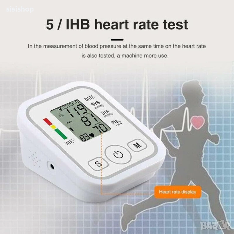 Специалният символ за сърдечен ритъм Ви информира веднага за състоянието на пулса.